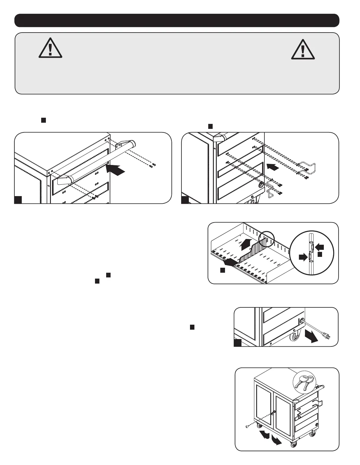 Pour installer le support de la poignée, utiliser la clé hexagonale incluse pour fixer quatre (4) vis hexagonales aux de l'armoire de la station de