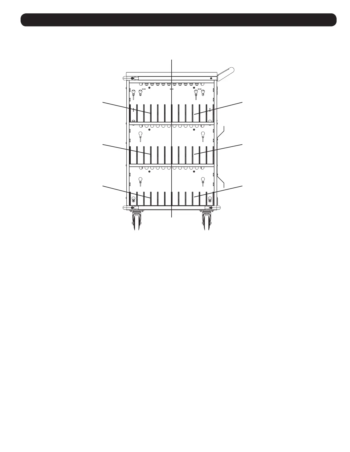 Each storage shelf is divided into two zones (Red and Blue). The device spaces for each zone are numbered.