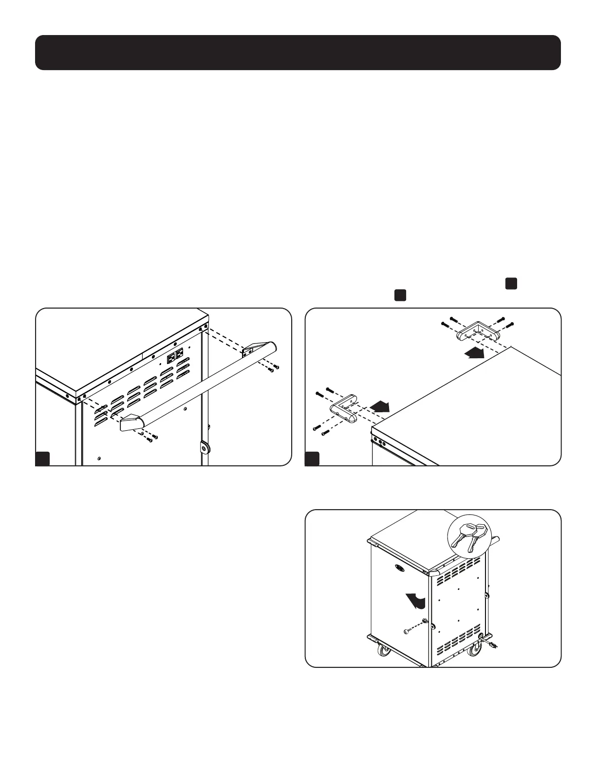 is recommended). Using the included hex key tool and four (4) hex screws, secure the handle bracket to the cart
