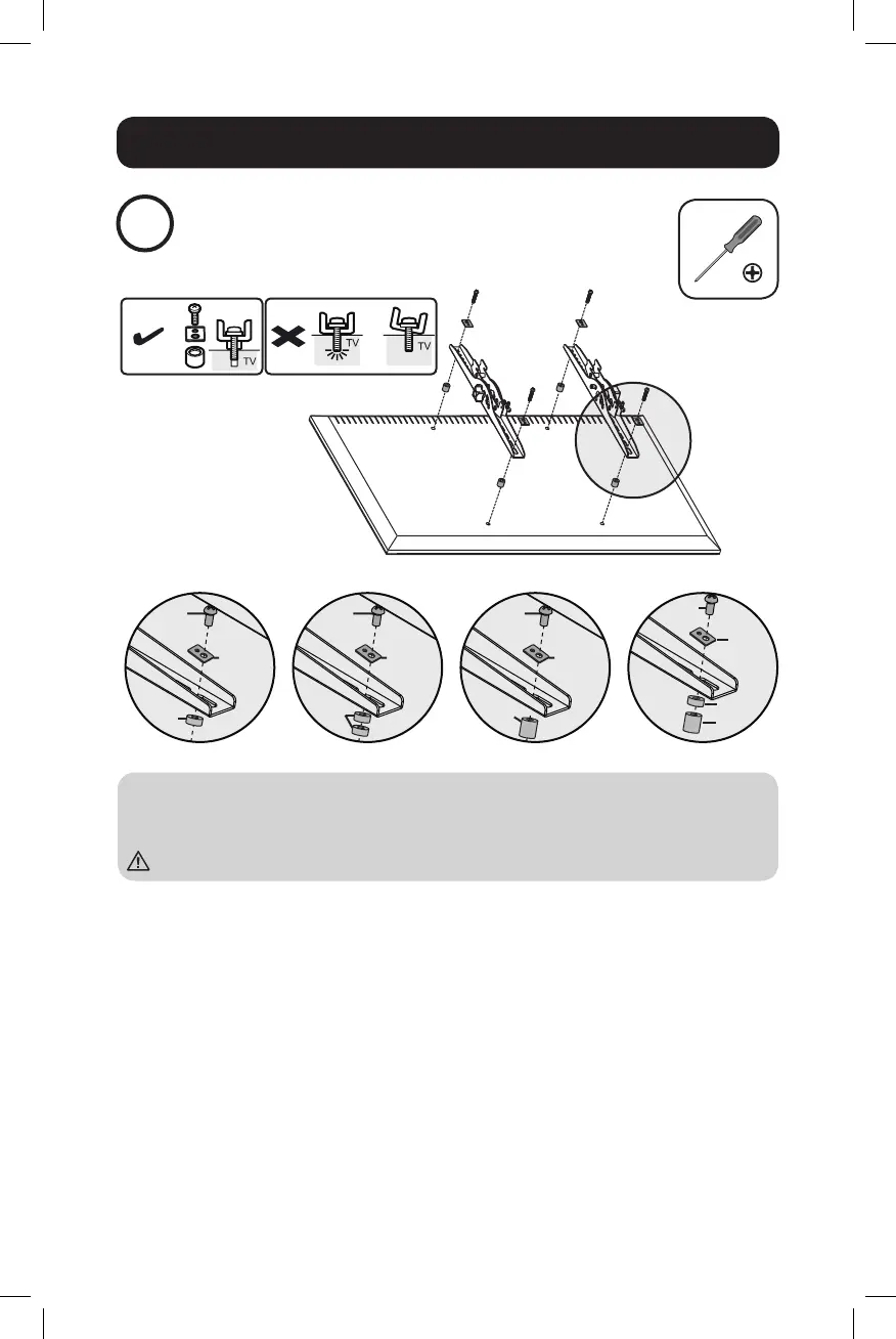 Note: Choose appropriate screws, washers and spacers (if necessary) according to the type