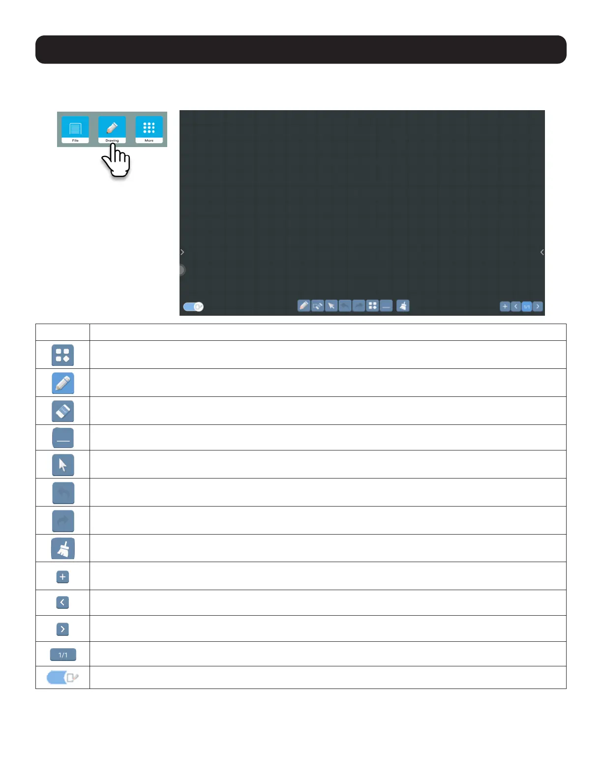 Open the built-in whiteboard application for drawing or writing on the screen.