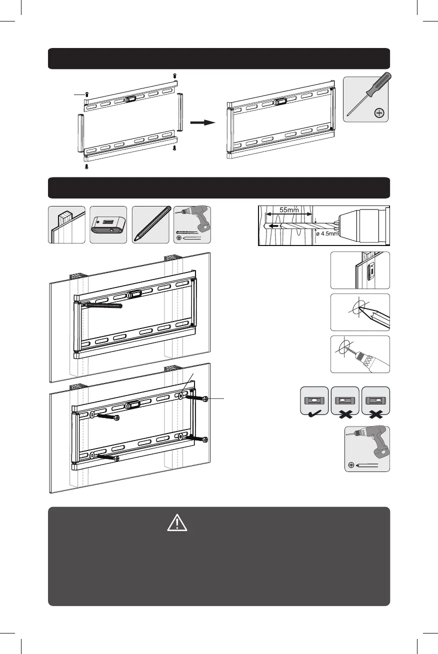 • Stellen Sie sicher, dass die Befestigungsschrauben in der Mitte eines Balkens verankert sind.