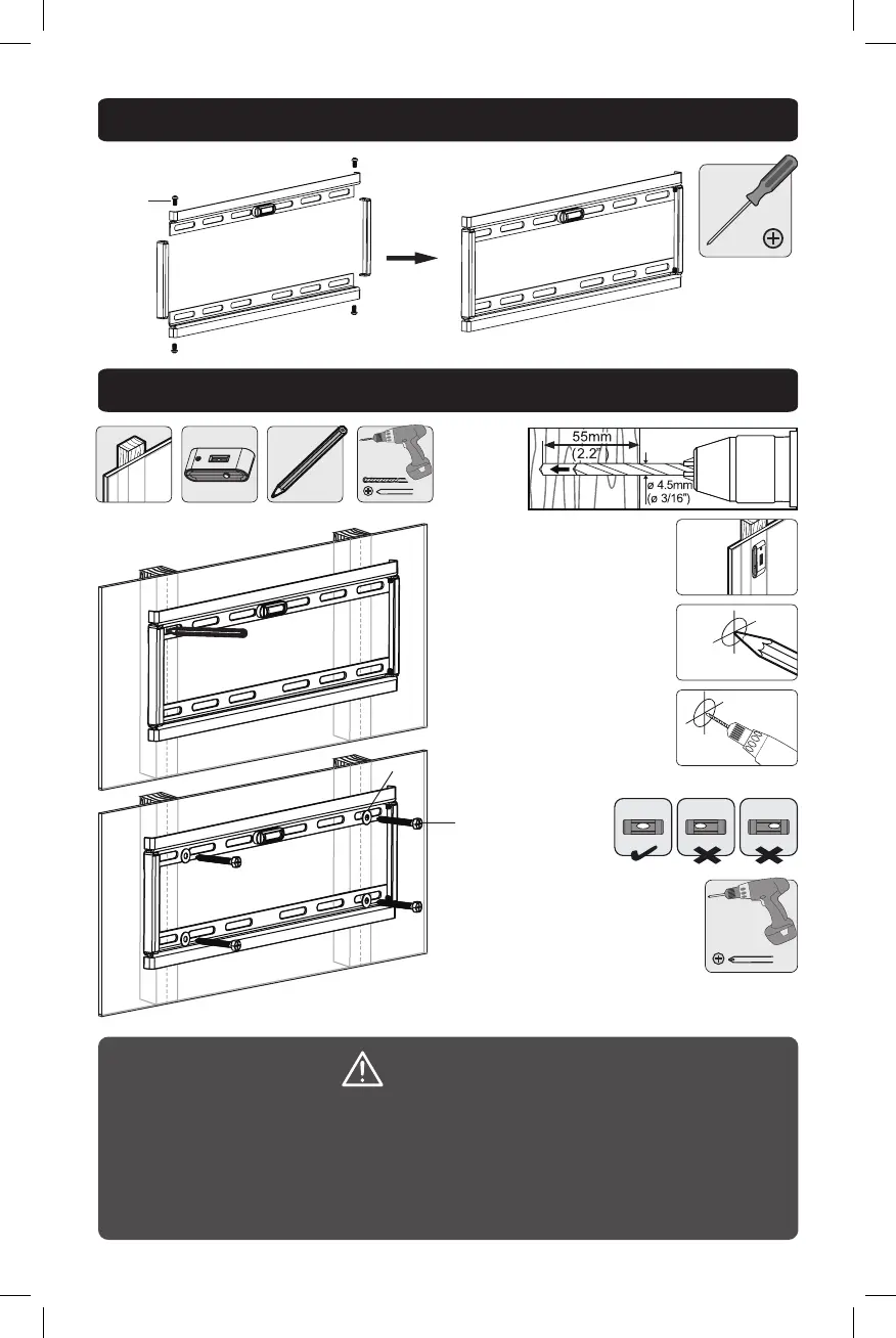• Make sure that mounting screws are anchored into the center of the studs.