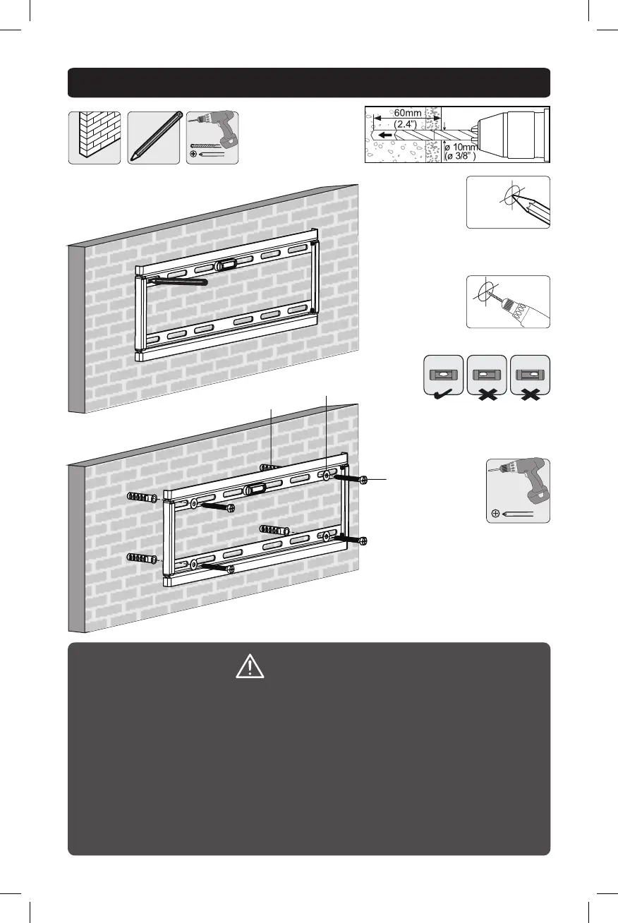 • When installing wall mounts onto a concrete masonry unit (also known as a CMU or