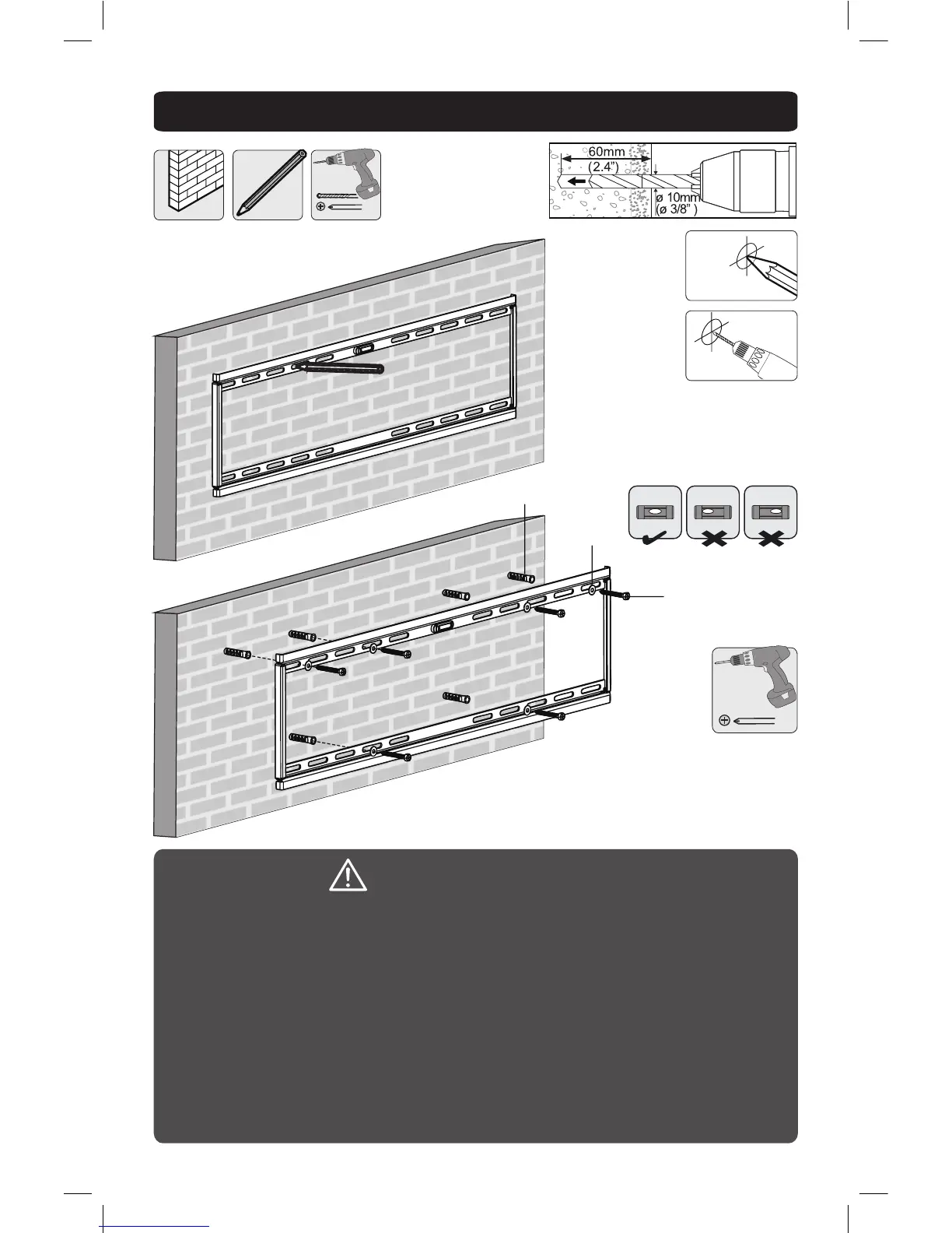 • Lorsque les montages muraux sont installés sur un élément de maçonnerie en béton