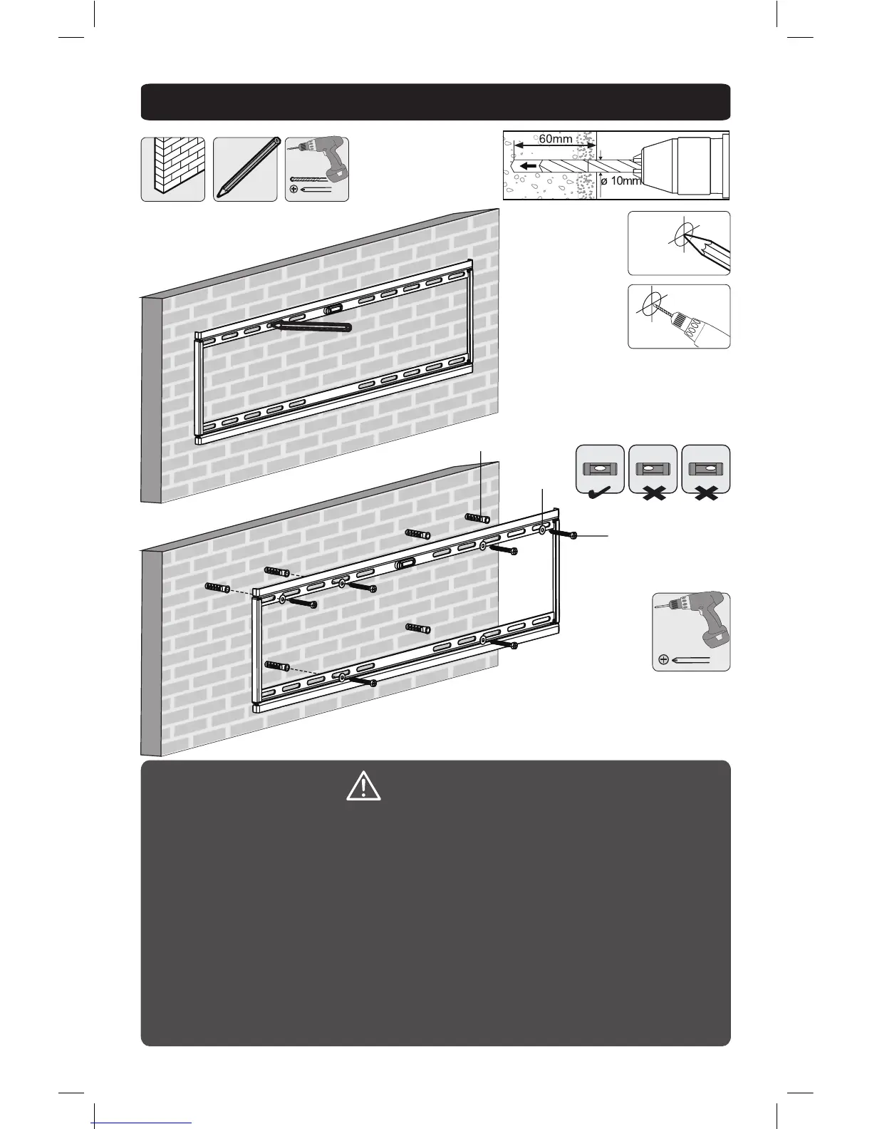 Bohrlöcher in die Mörtelfugen bohren! Vergewissern Sie sich, dass Sie die vormontierte
