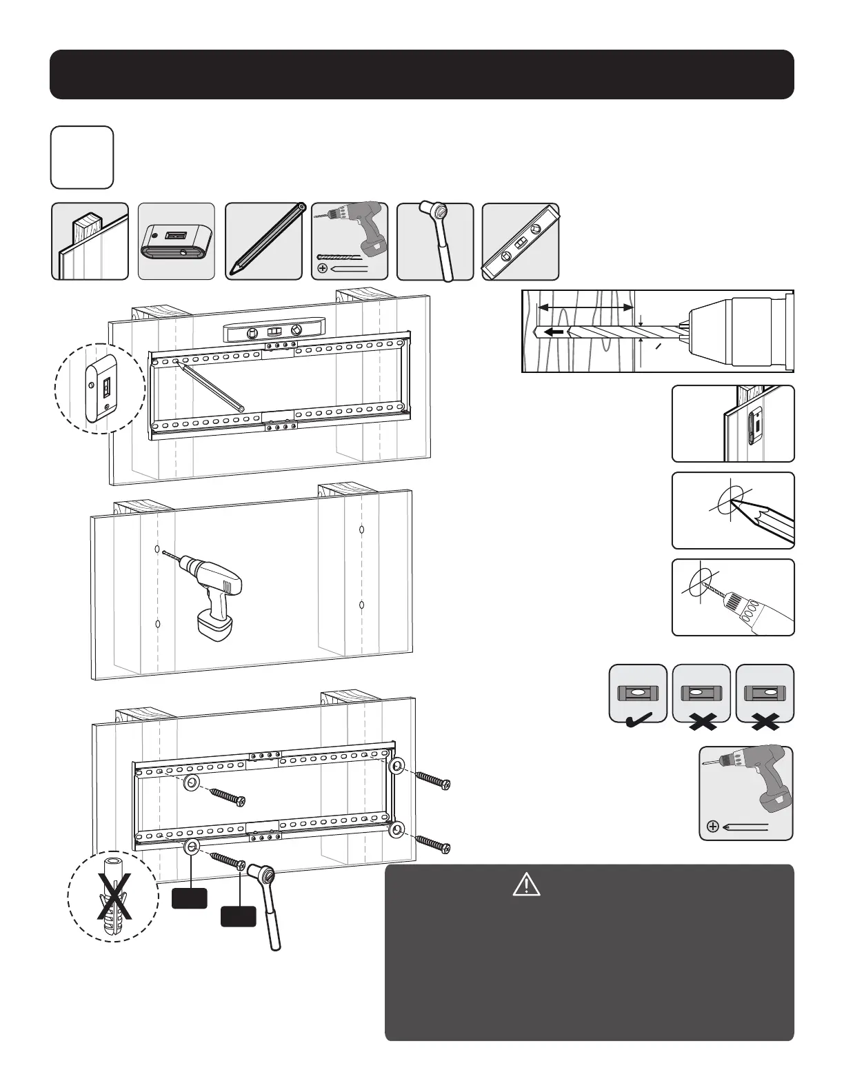 • Необходимо обеспечить ввертывание крепежных винтов по центру элементов каркаса.