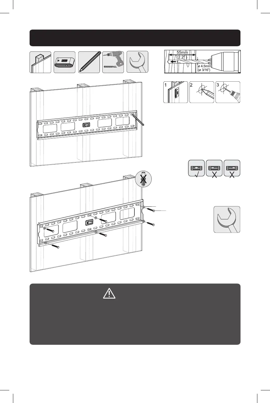 • Make sure that mounting screws are anchored into the center of the studs.