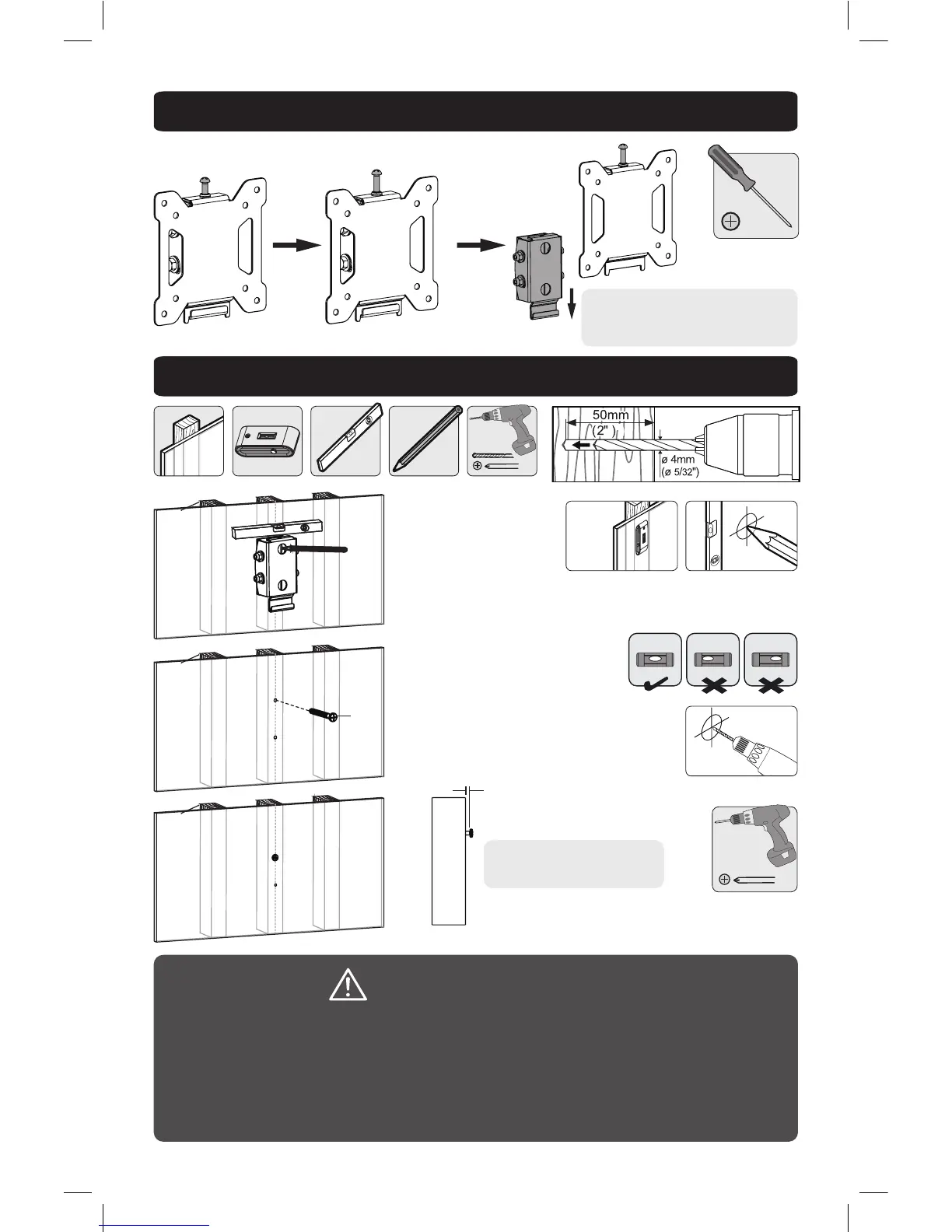 • S'assurer que les vis de montage sont ancrées au centre des montants.
