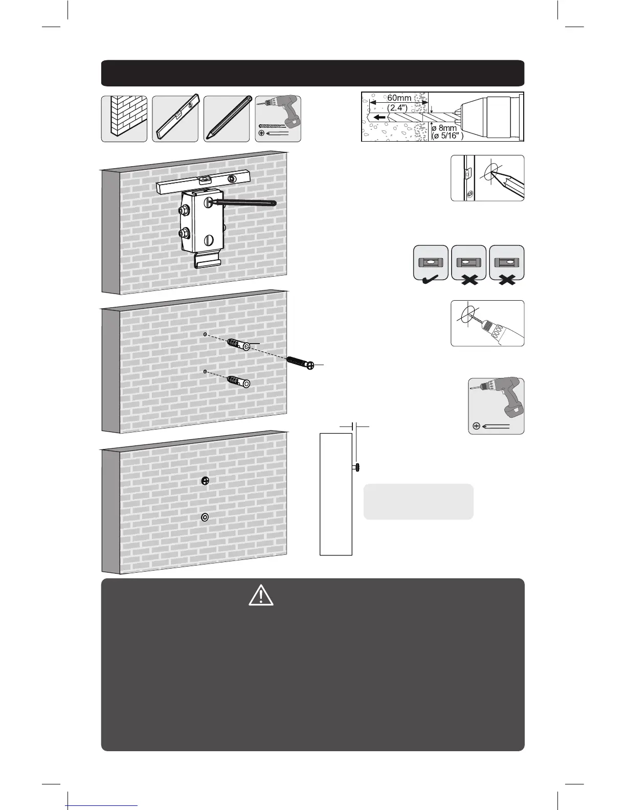 • When installing wall mounts onto a concrete masonry unit (also known as a CMU or