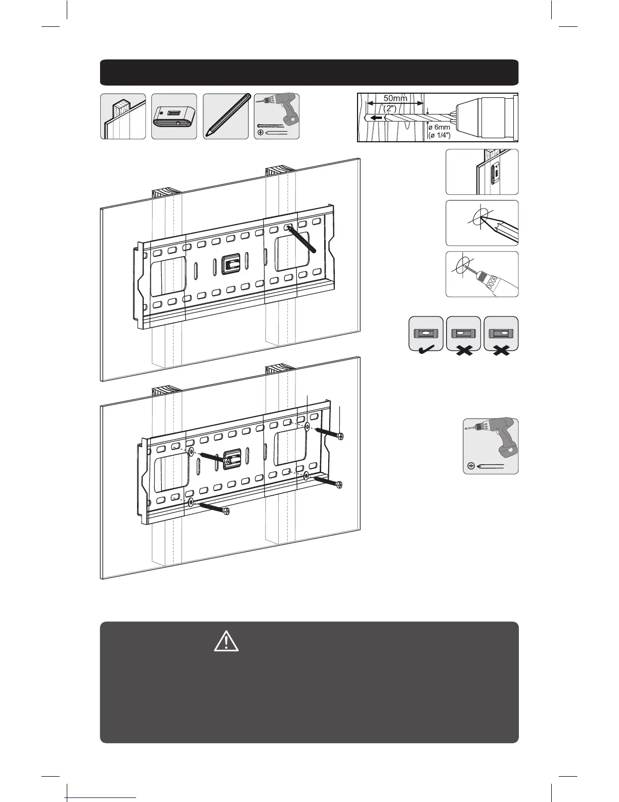 • S'assurer que les vis de montage sont ancrées au centre des montants.