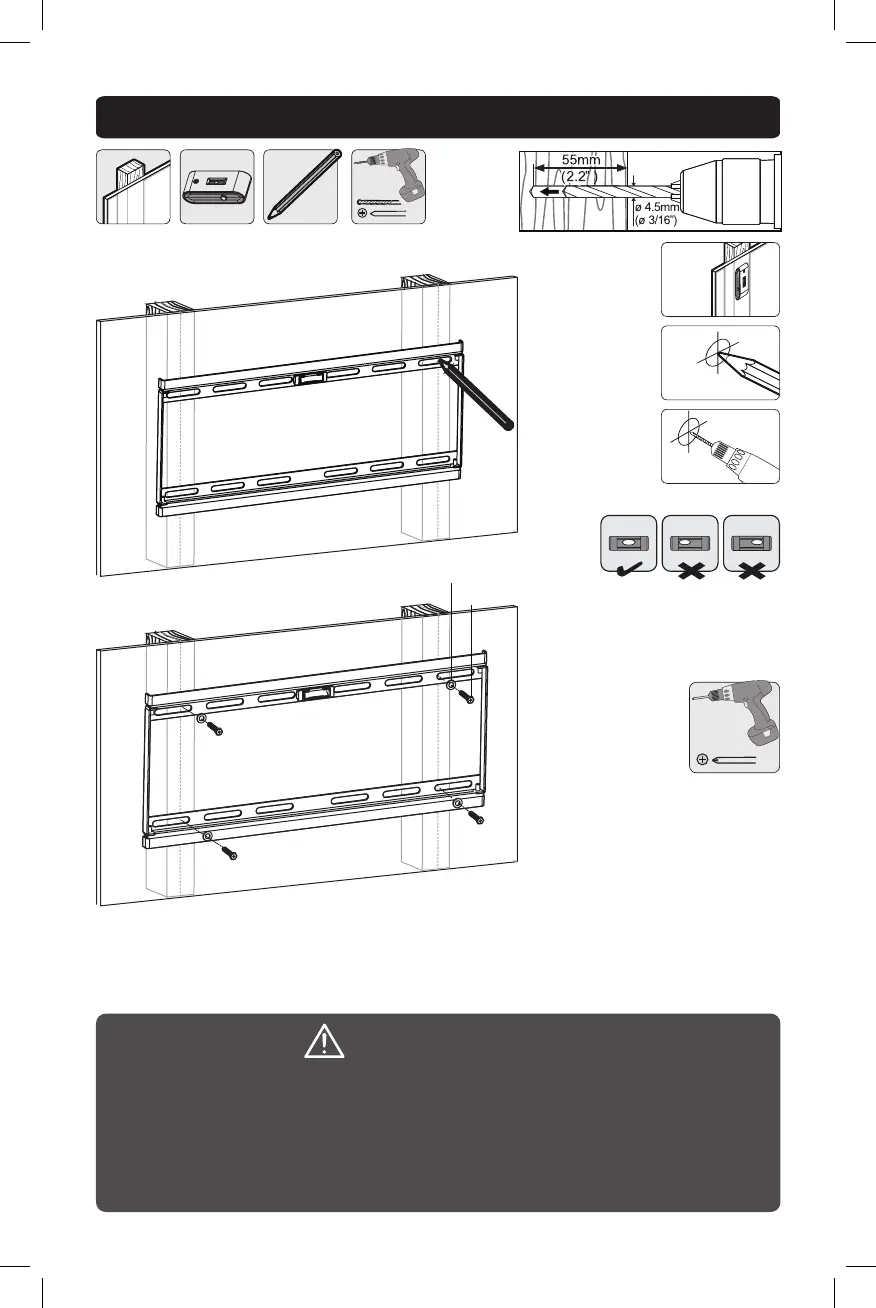 • Cerciórese que los tornillos de instalación estén anclados en el centro de los montantes.
