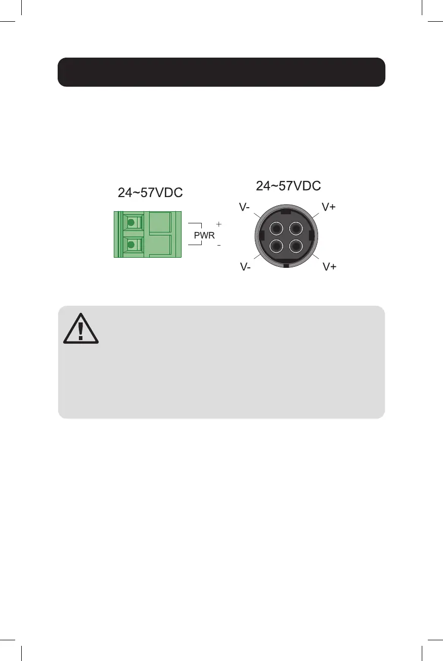 To insert the power wire and connect the +24~57VDC at a maximum of