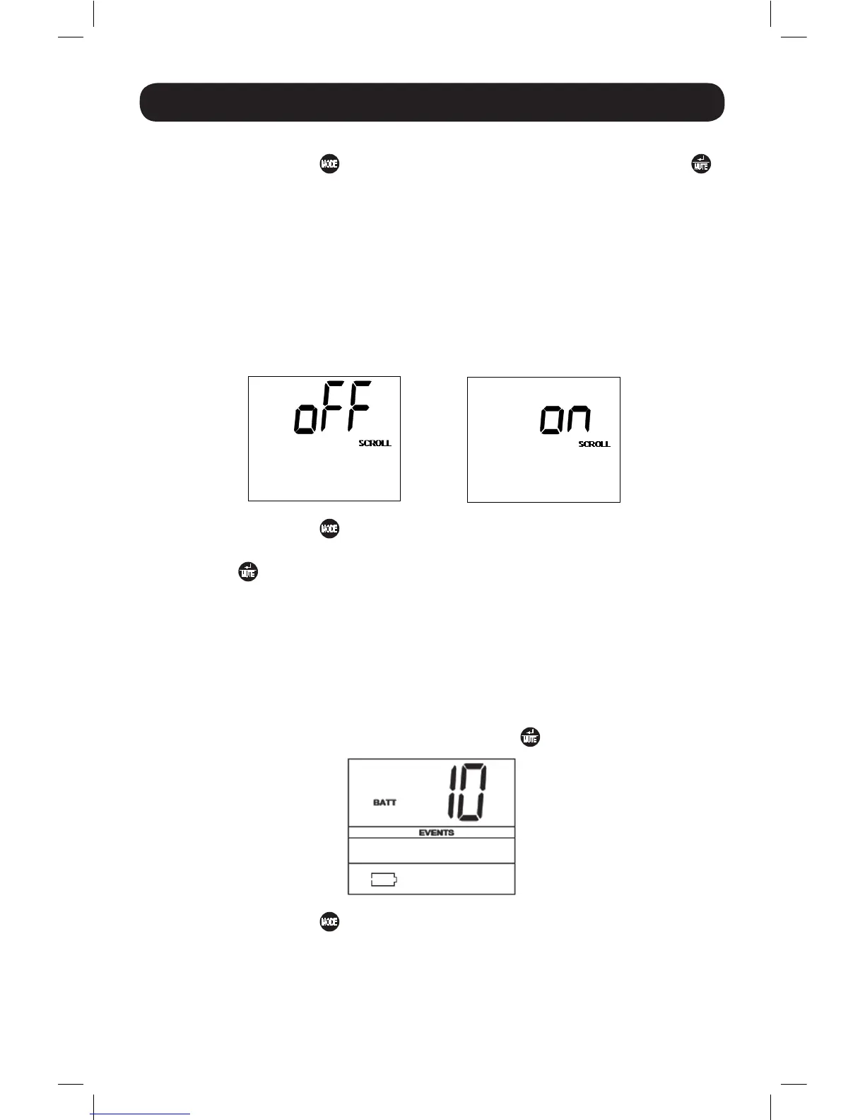 Toque repetidamente el botón para avanzar hasta la pantalla Scroll como se mostró