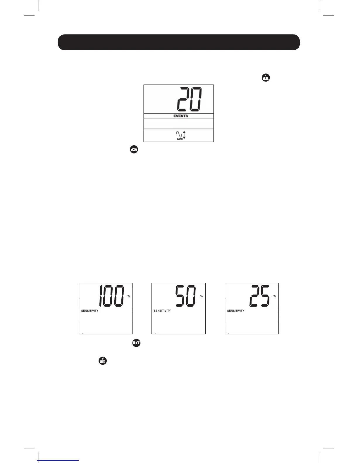 Toque repetidamente el botón para avanzar hasta la pantalla de Sensibilidad, como se mostró