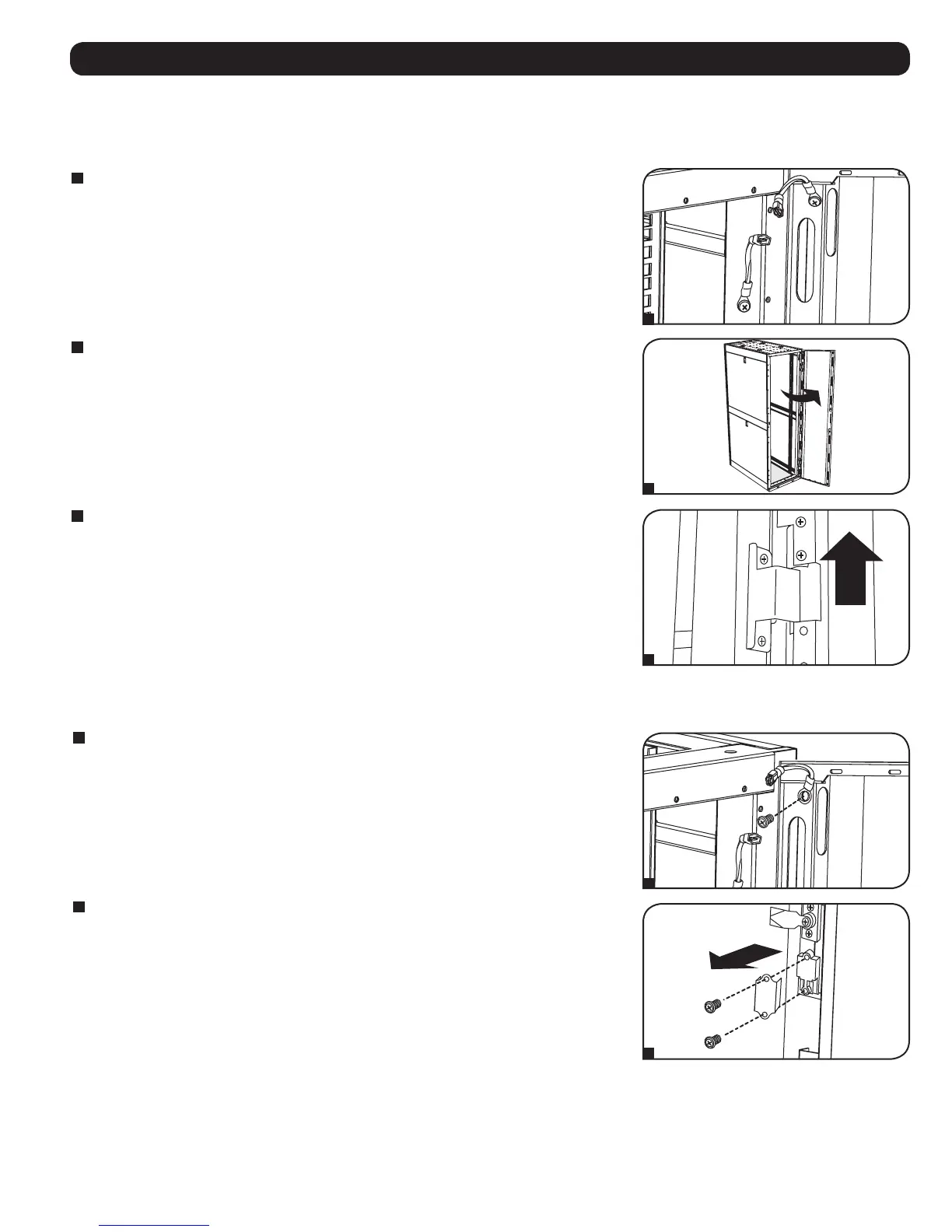 Levante la puerta hasta sacarla de las bisagras y quítela del estante.