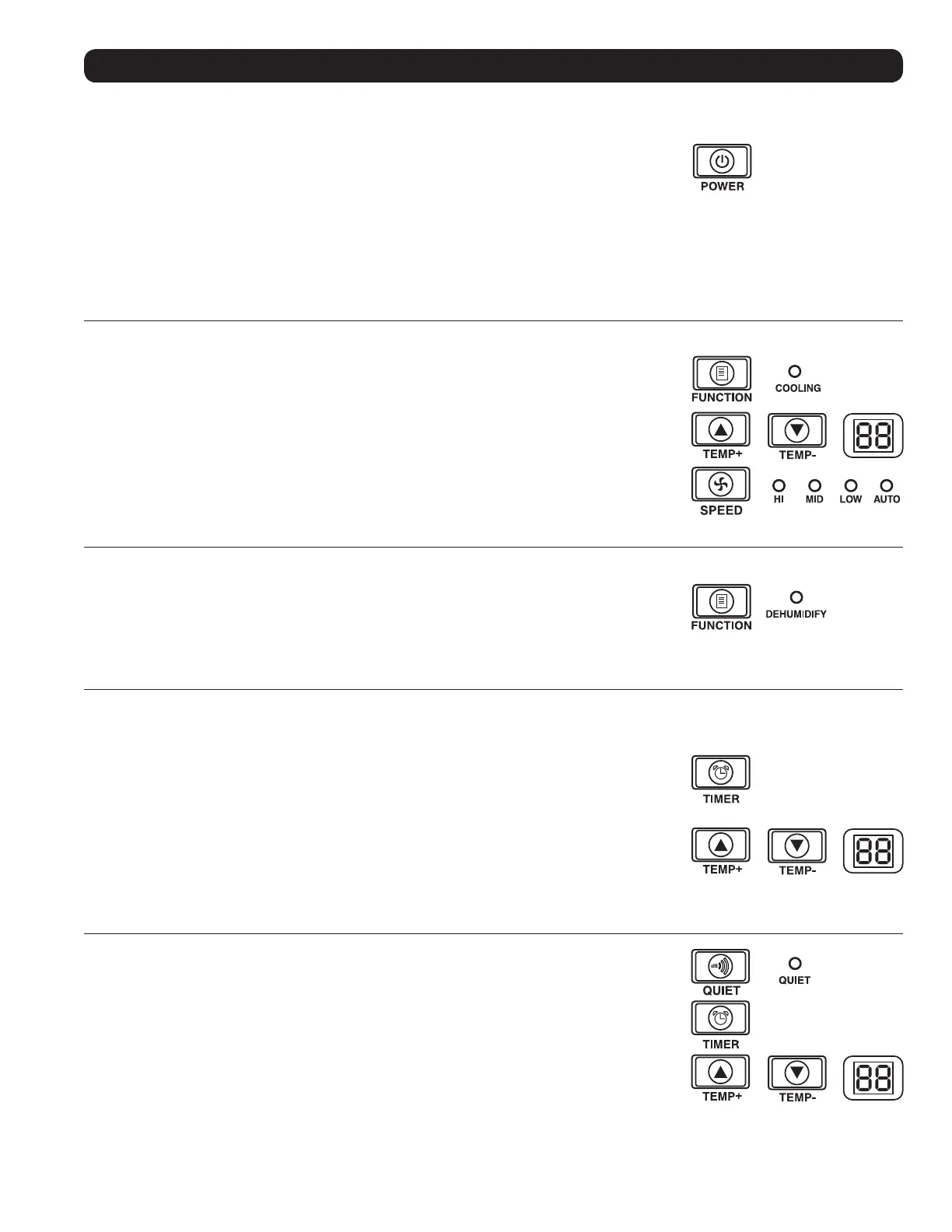 Para activarlo, oprima el botón “QUIET”. Se encenderá el LED Quiet. Seleccione la temperatura deseada