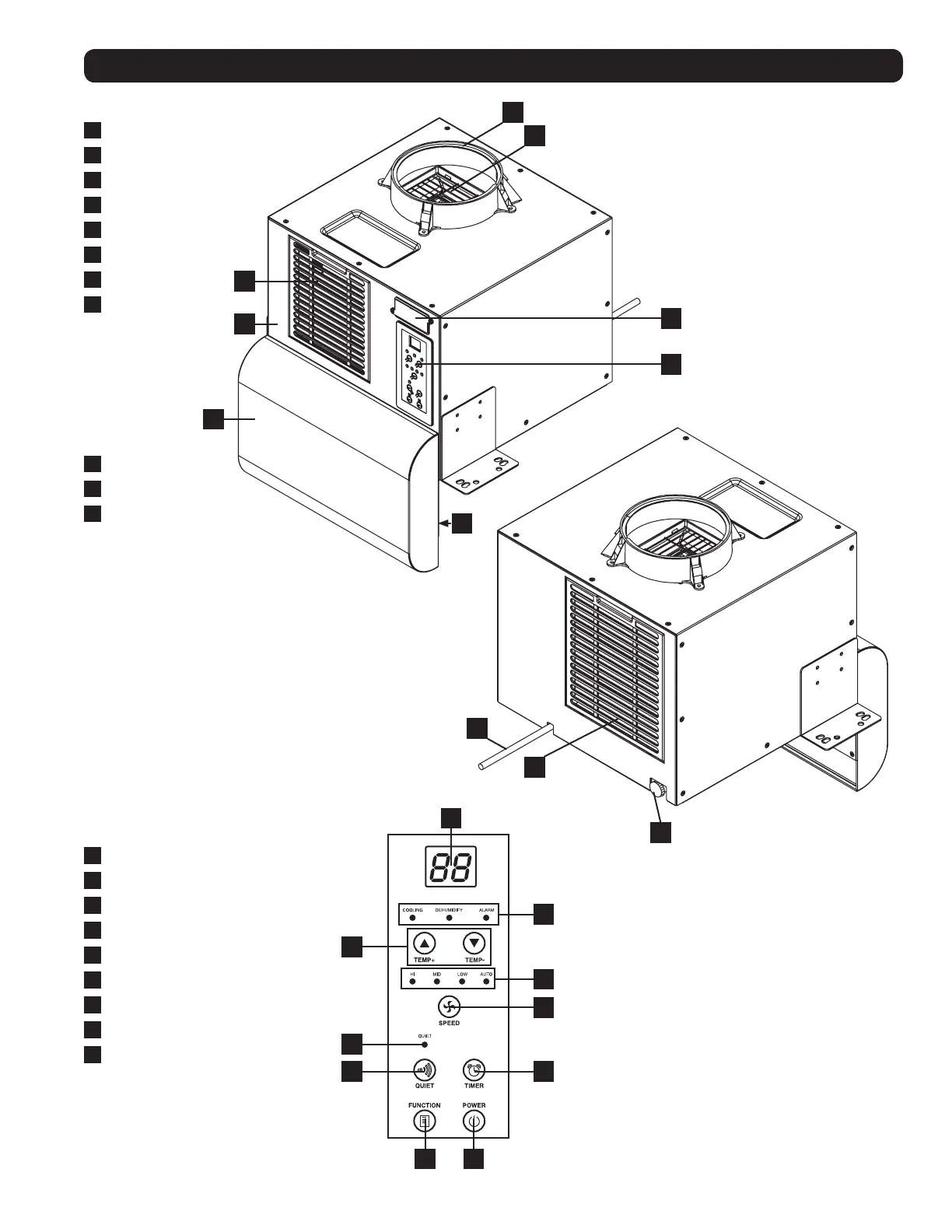Tripp Lite SRCOOL2KWM - Features of the Wall-Mount AC Unit; Front and Rear View Components; Control Panel Overview