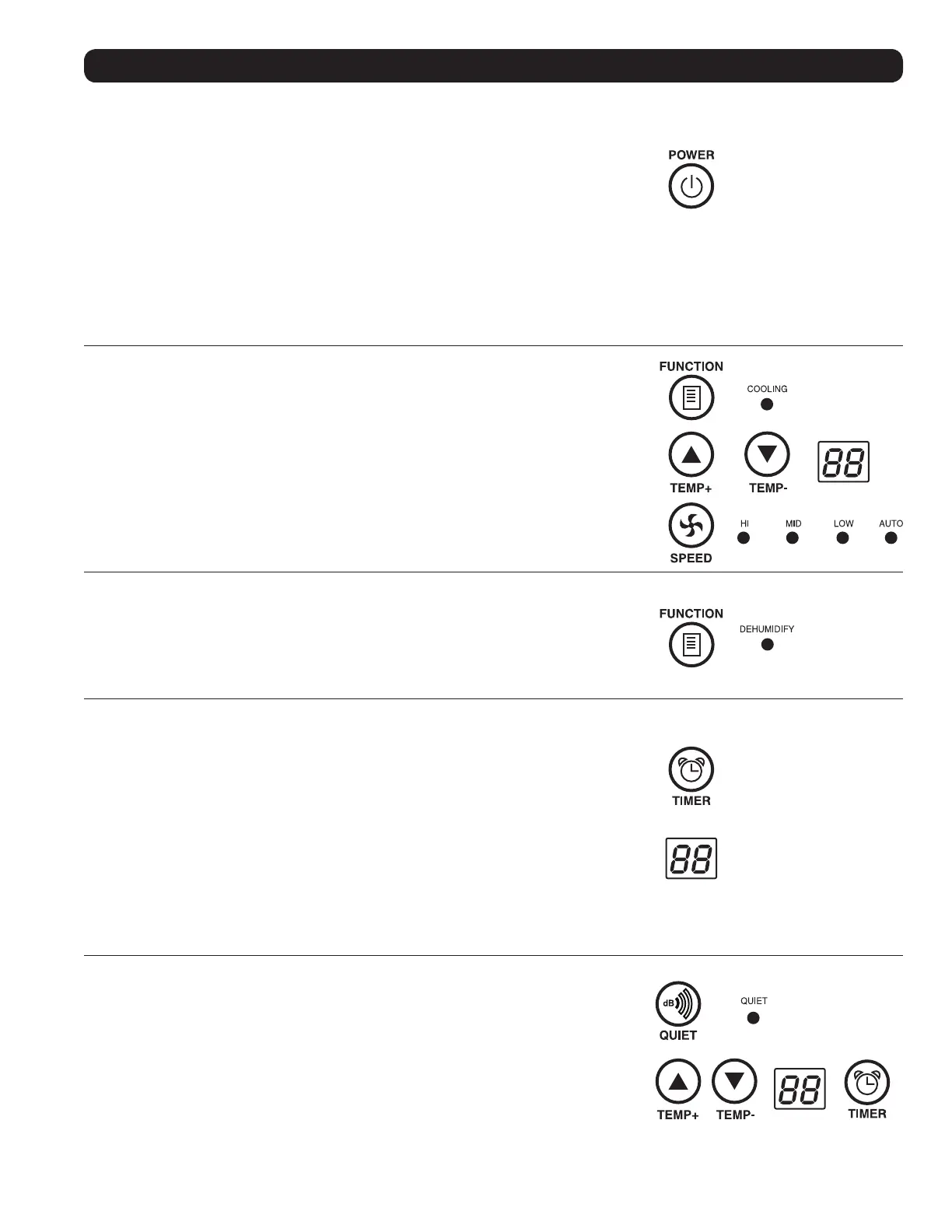 Timer On (Note: The unit must be off to activate the Timer On function. Confirm that mode, temperature