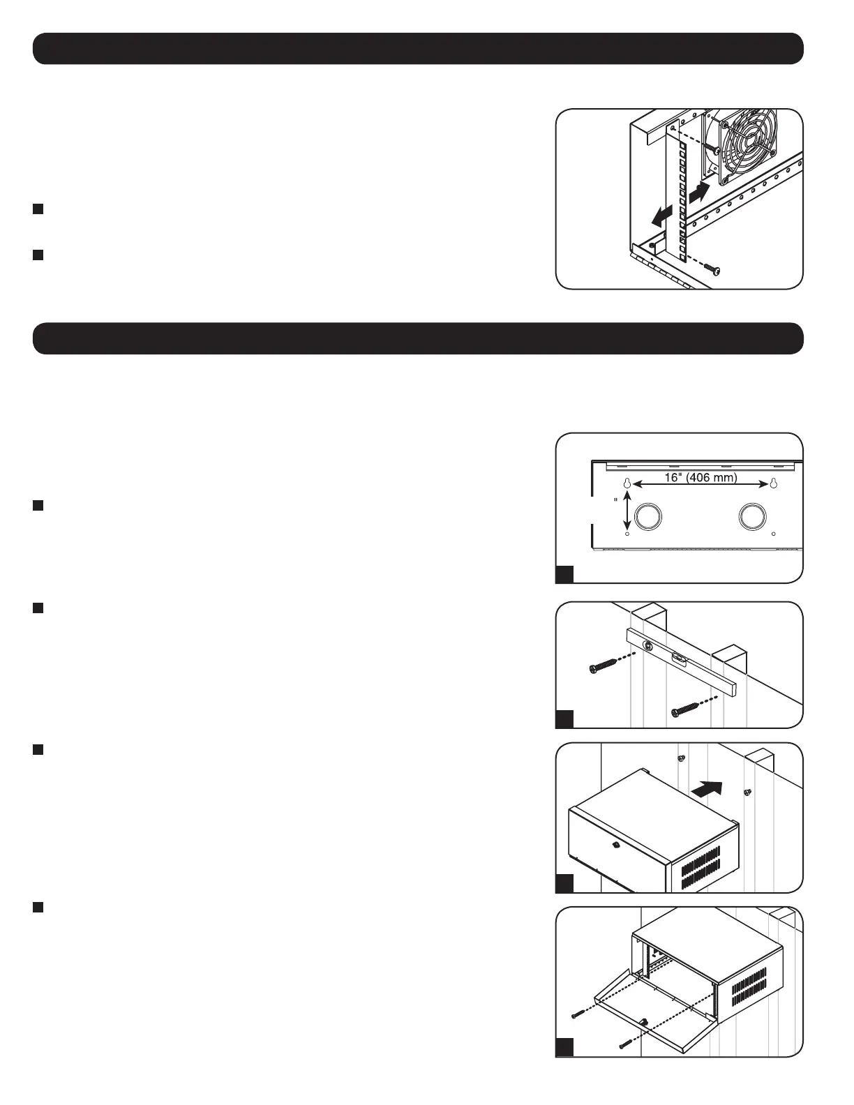 and mark two mounting holes 16” (406 mm) apart. Then insert two M8 or 5/16” bolts into the