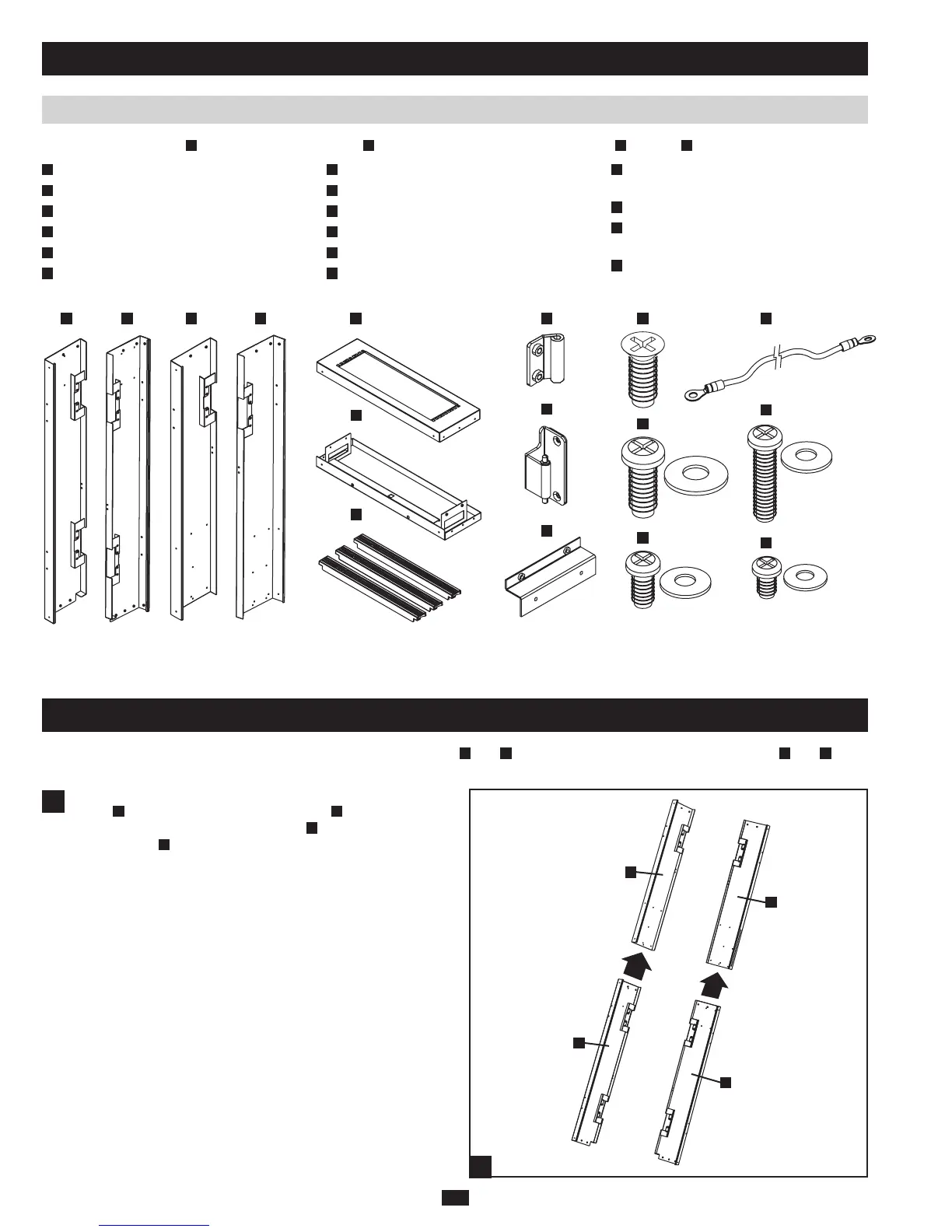 Note: For 25U enclosures, you will use only the lower vertical sections