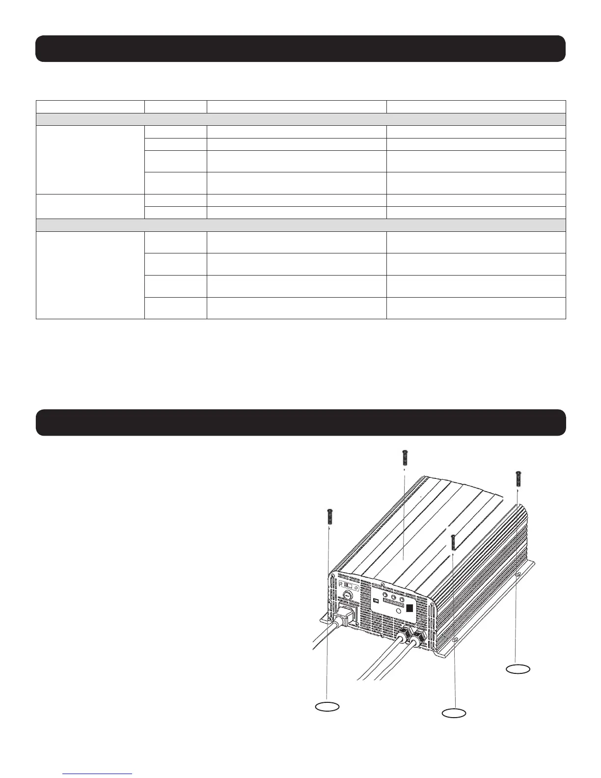mount, install four fasteners (not included) through the charger’s