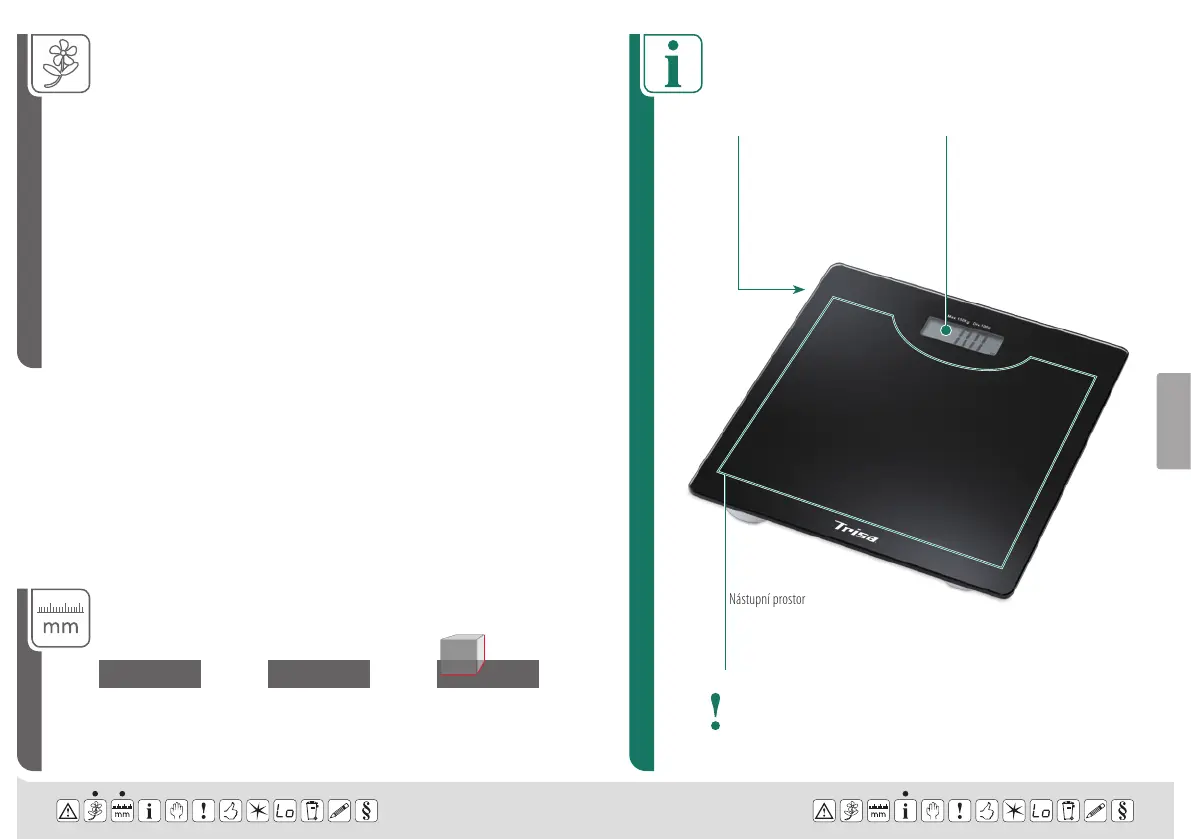 Postavte sa na váhu suchými nohami – pri mokrých nohách hrozí nebezpečie šmyku!