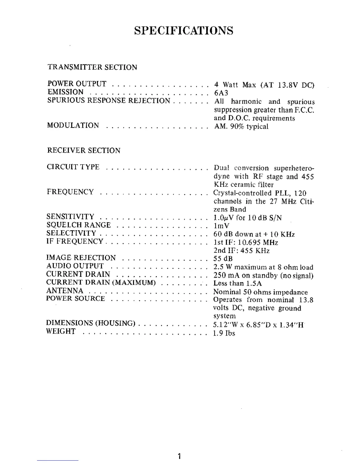 TriStar 120 - Specifications; Transmitter Section; Receiver Section