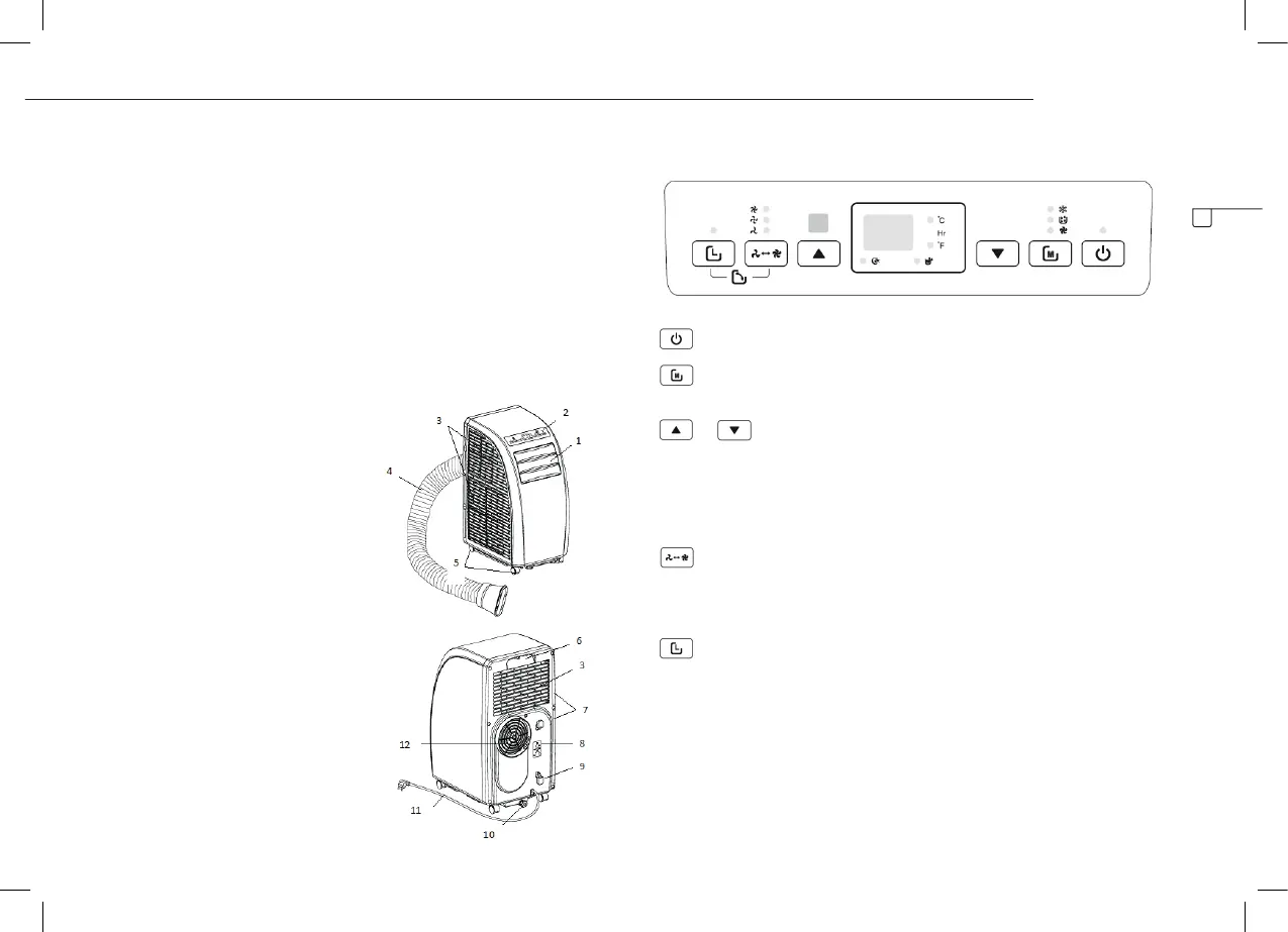 (Aan/Uit): druk op deze knop om de airconditioner aan of uit te zetten.