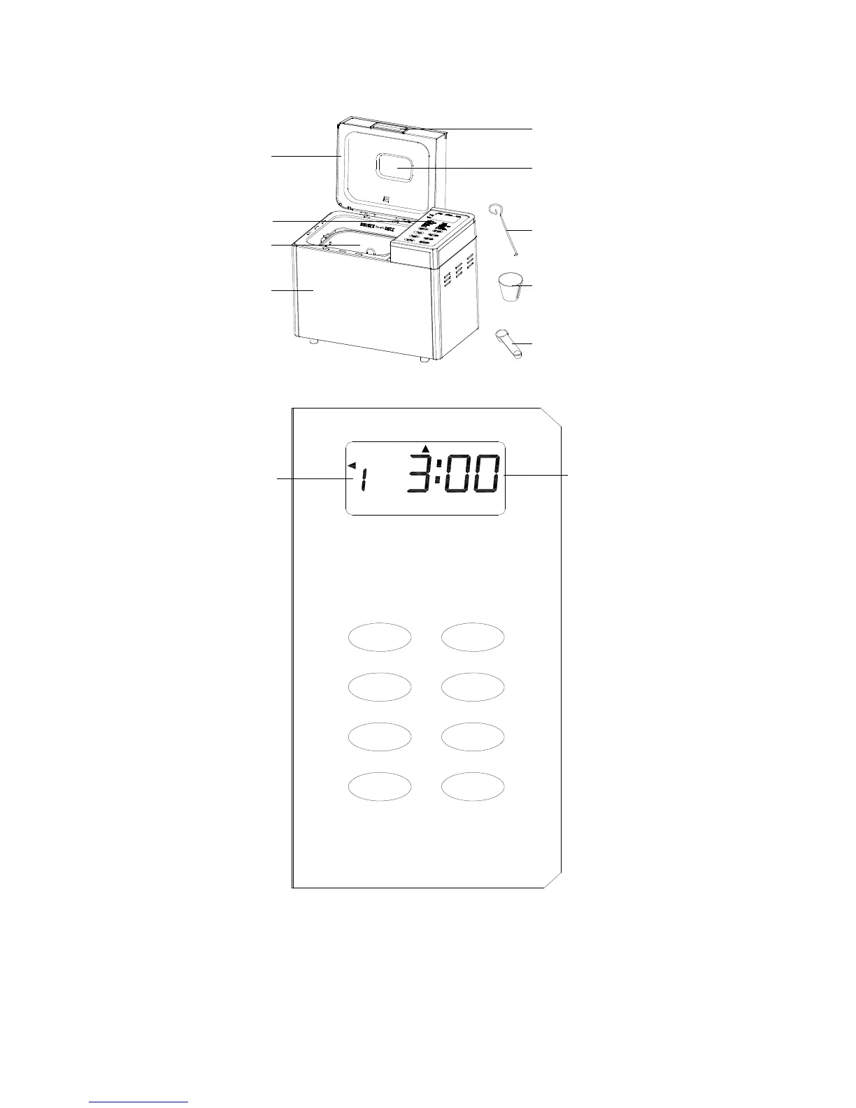 Zodra de broodbakmachine is aangesloten klinkt er een pieptoon en verschijnt “1 3:00 ” op de