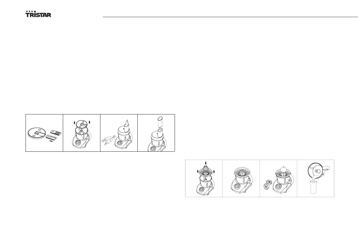 • Snij de sinaasappel doormidden en druk de gesneden sinaasappel langzaam