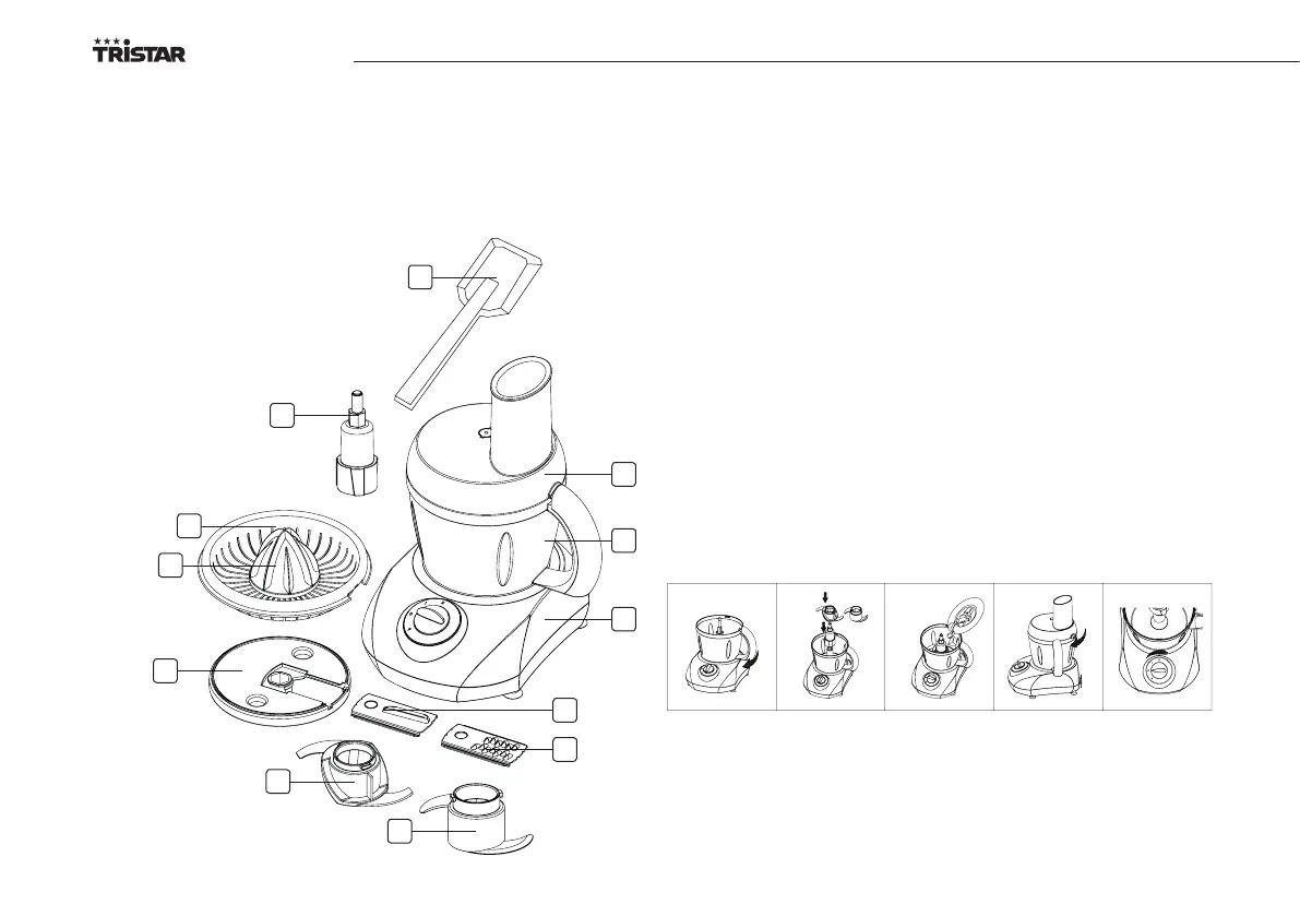 • Umieść wspornik ostrza na osi na środku pojemnika i naciśnij go do dołu.