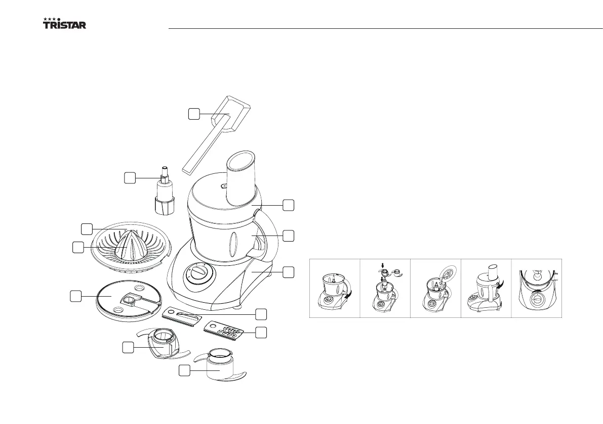 • Put the plastic bowl on the power unit and turn the handle in clock-