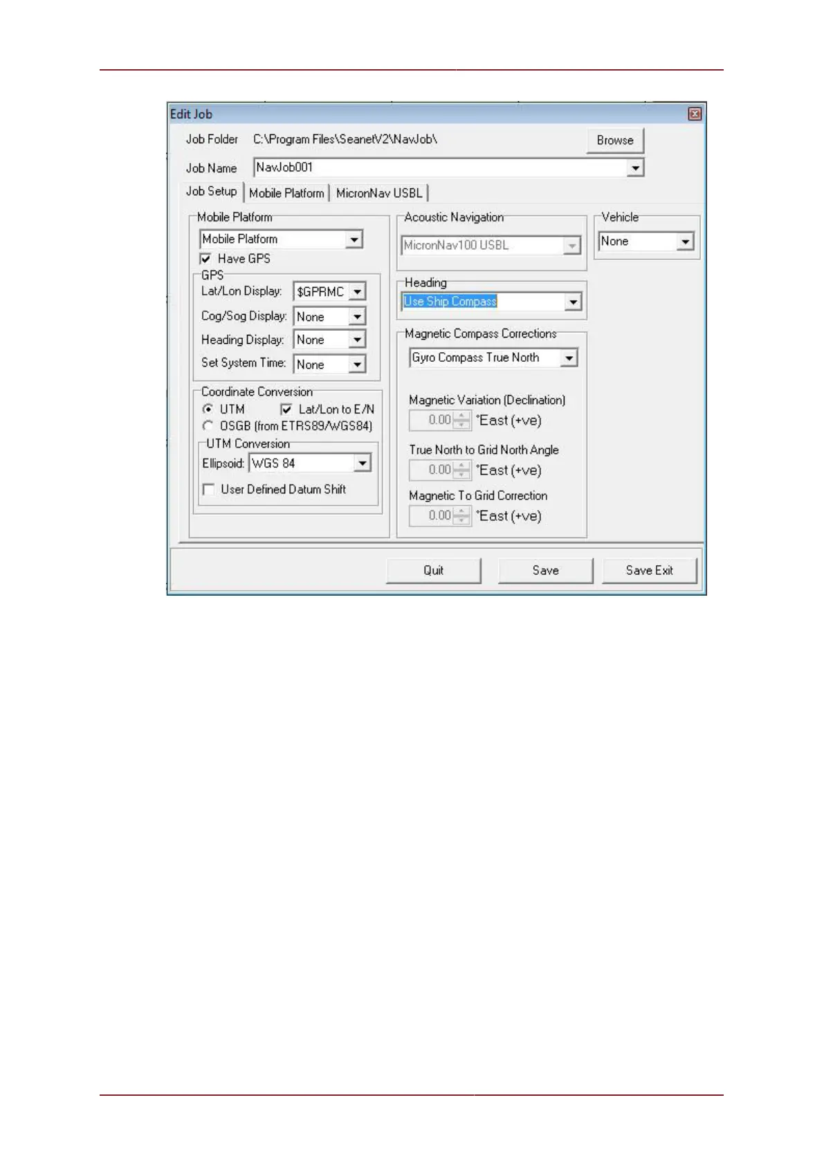 Step 2: Next, in the MicronNav USBL tab-page, set the Attitude Sensor drop-down to No