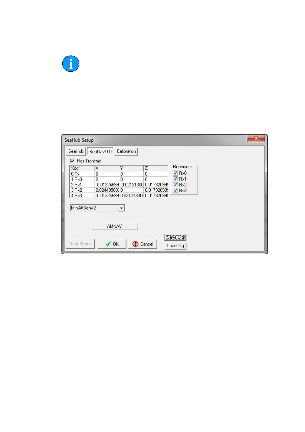 setup panel by clicking the SeaNav100 tab and check the Has Transmit checkbox and