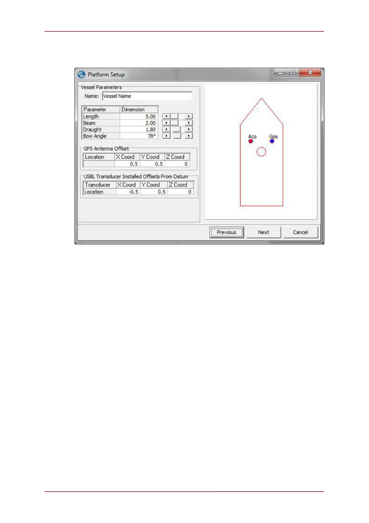 The next page of the wizard allows the user to set the Parameters for the Vessel and enter