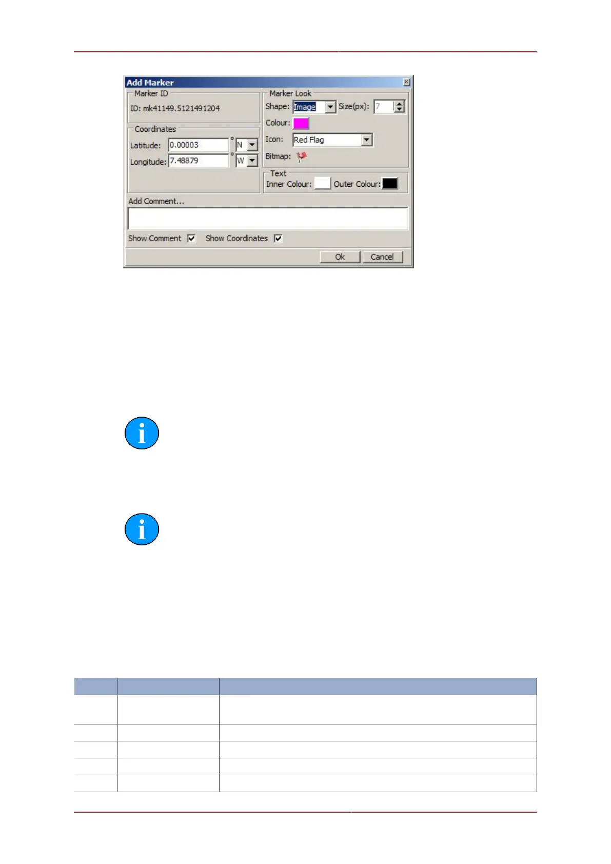 In the Add Marker dialog options for the maker can be configured such as; shape, image