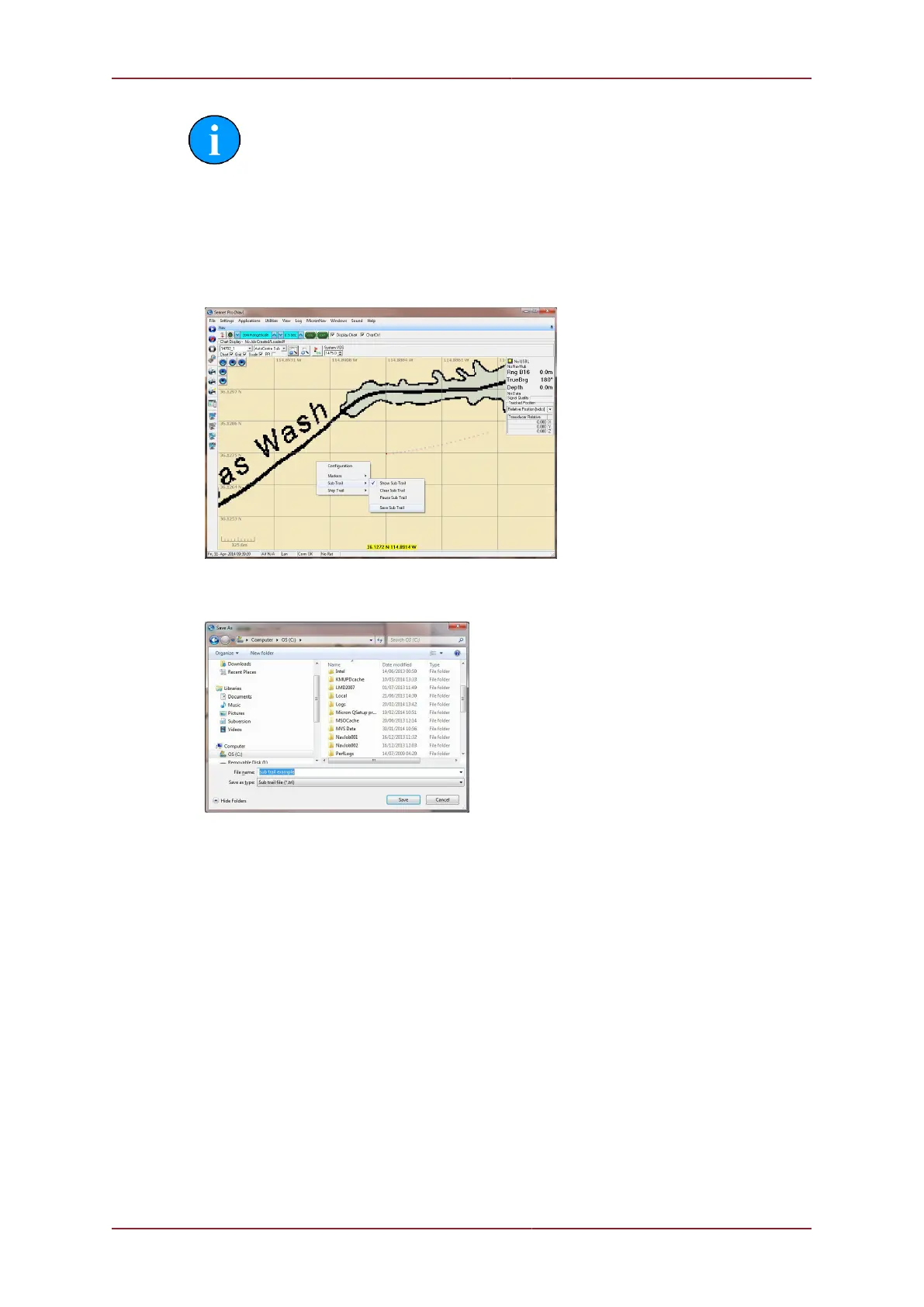 1. In the MicronNav application, right-click on the chart window and select Sub Trail –