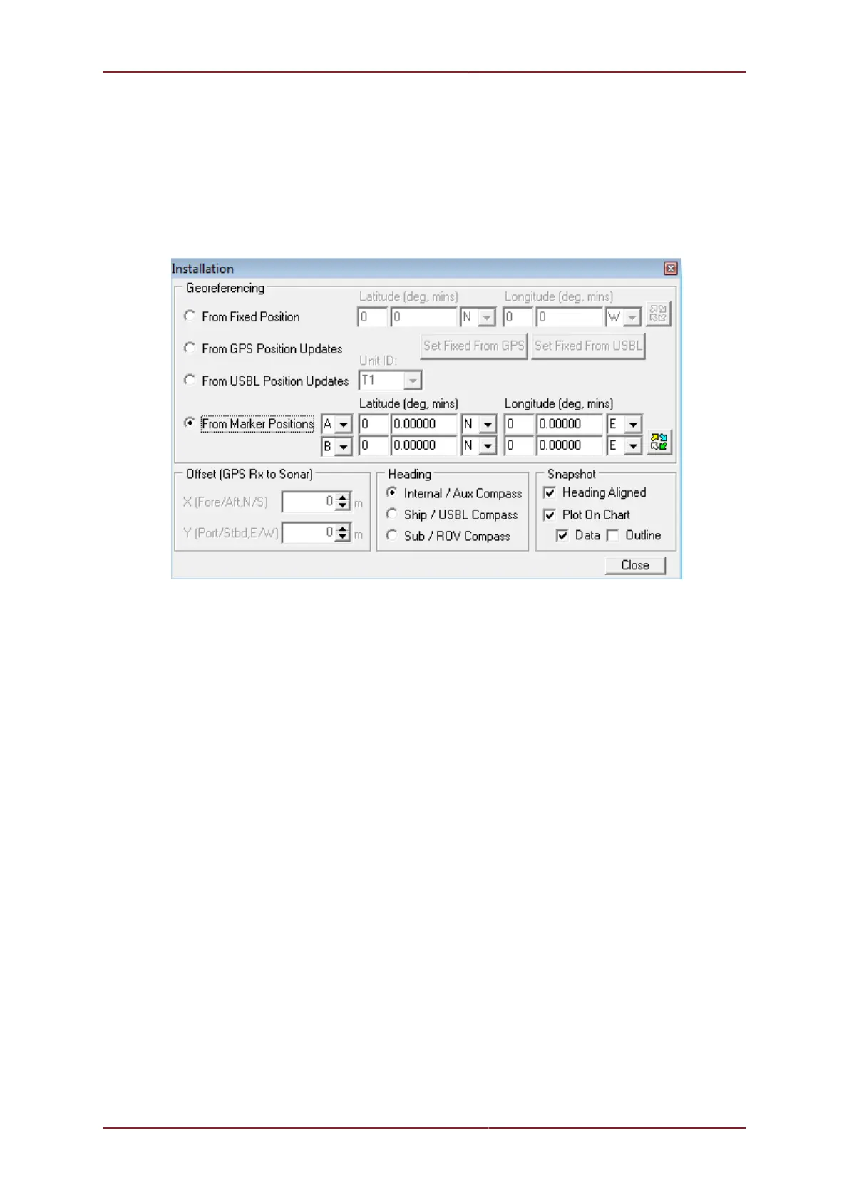 From Fixed Position If there is no GPS input, select this option and input the Sonar