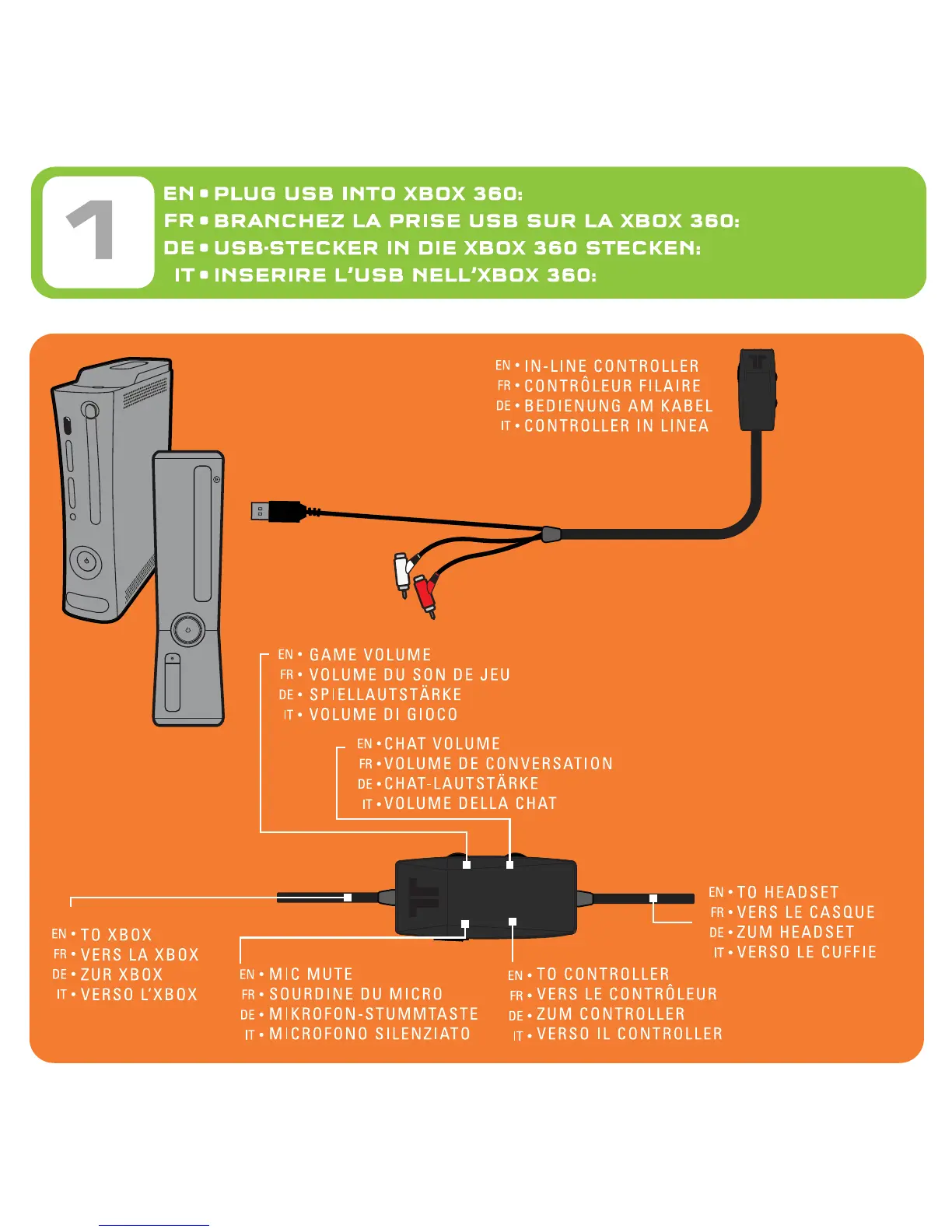 Triton Audio Trigger - Step 1: USB Connection to Xbox 360; Plug USB into Xbox 360; Game and Chat Volume Control; Connection Points