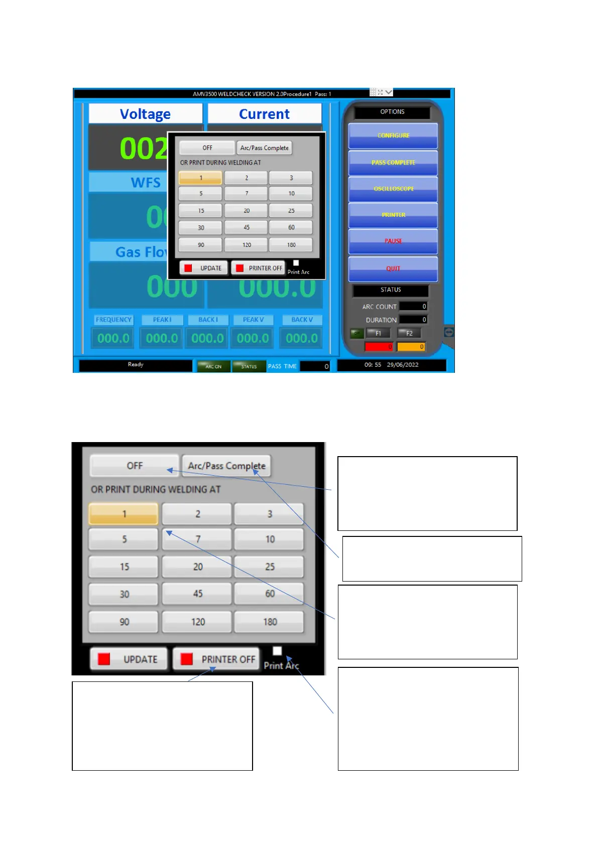 The AMV prints out the recorded data as the weld progresses. It simultaneously saves a text file
