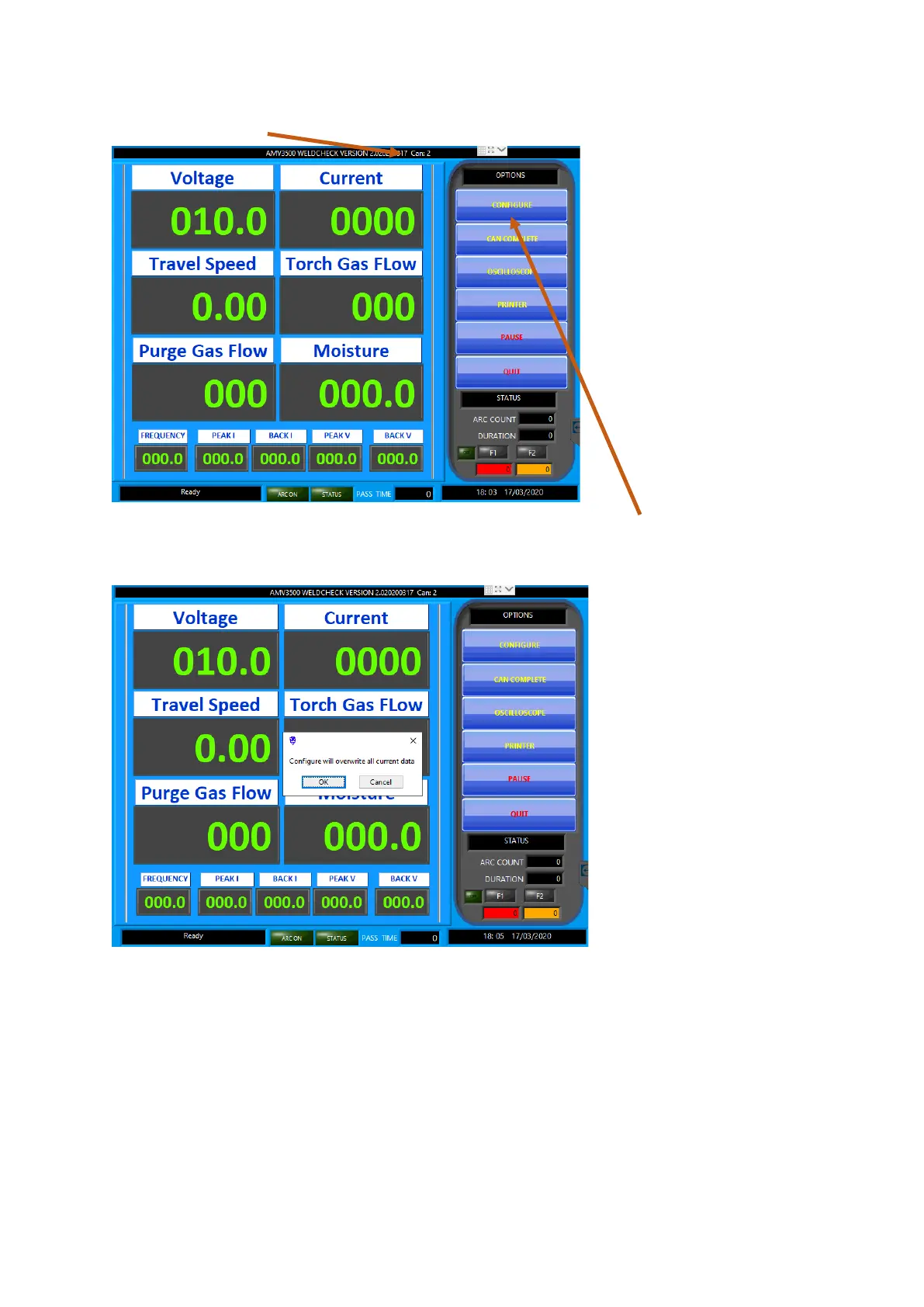 If you want to start a new procedure or edit this CAN of this set press CONFIGURE.