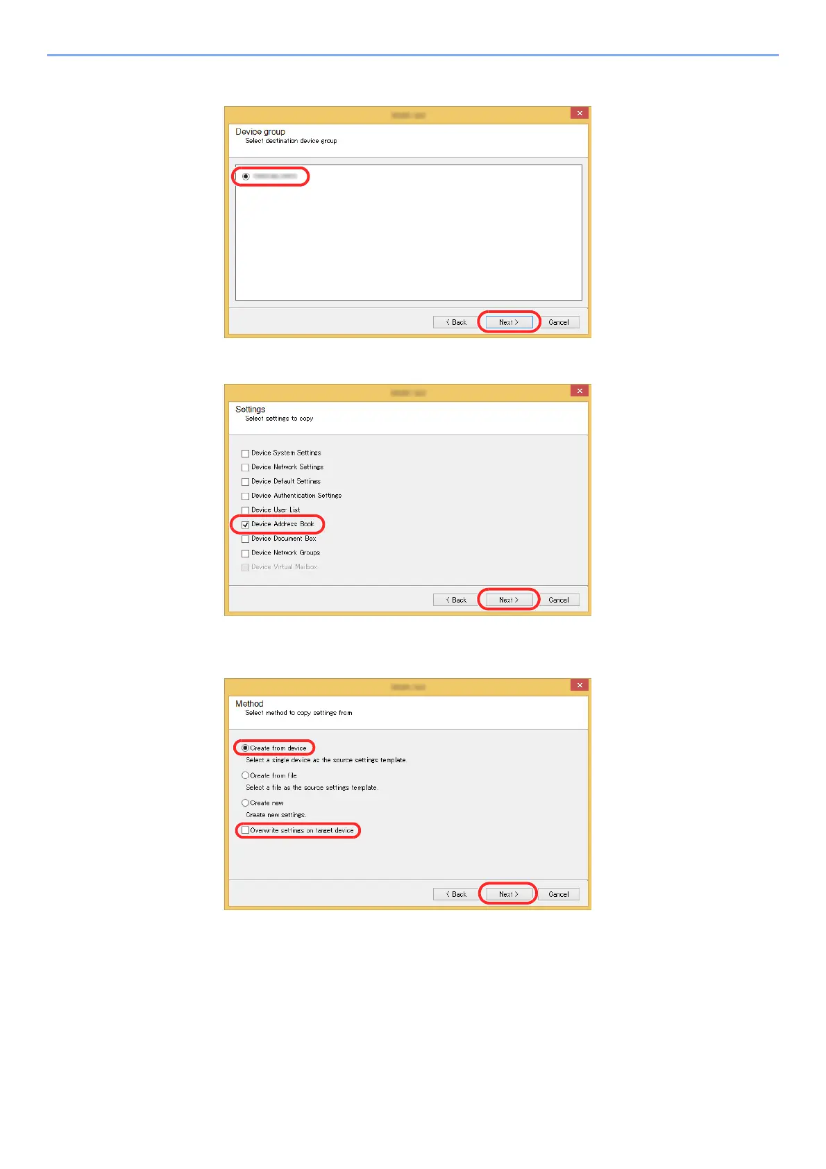 5 Select [Create from device] and remove the checkmark from [Overwrite settings on