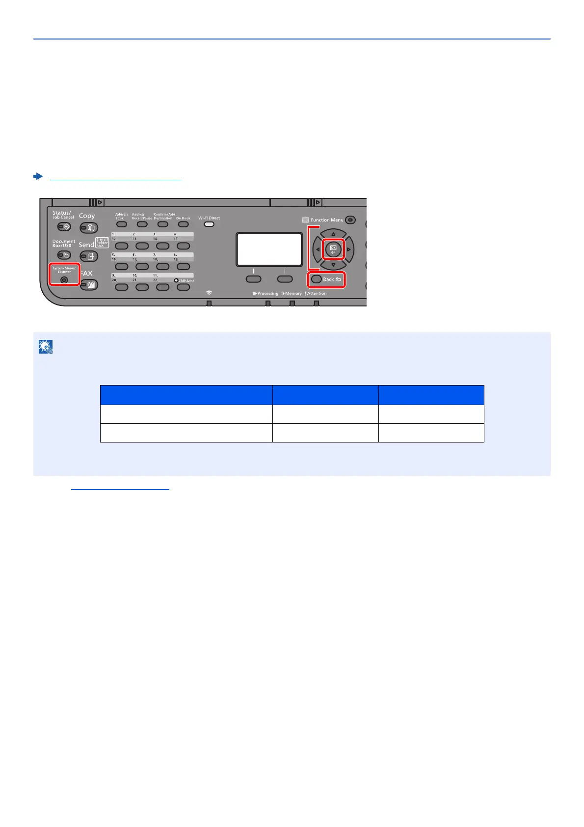 Select the [System Menu/Counter] key to show the settings on the message display. Then, select from the settings