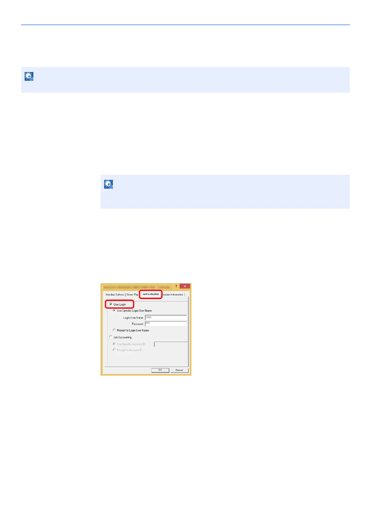 To manage the users that send faxes from a PC, the following settings are necessary in the FAX driver. Instructions are