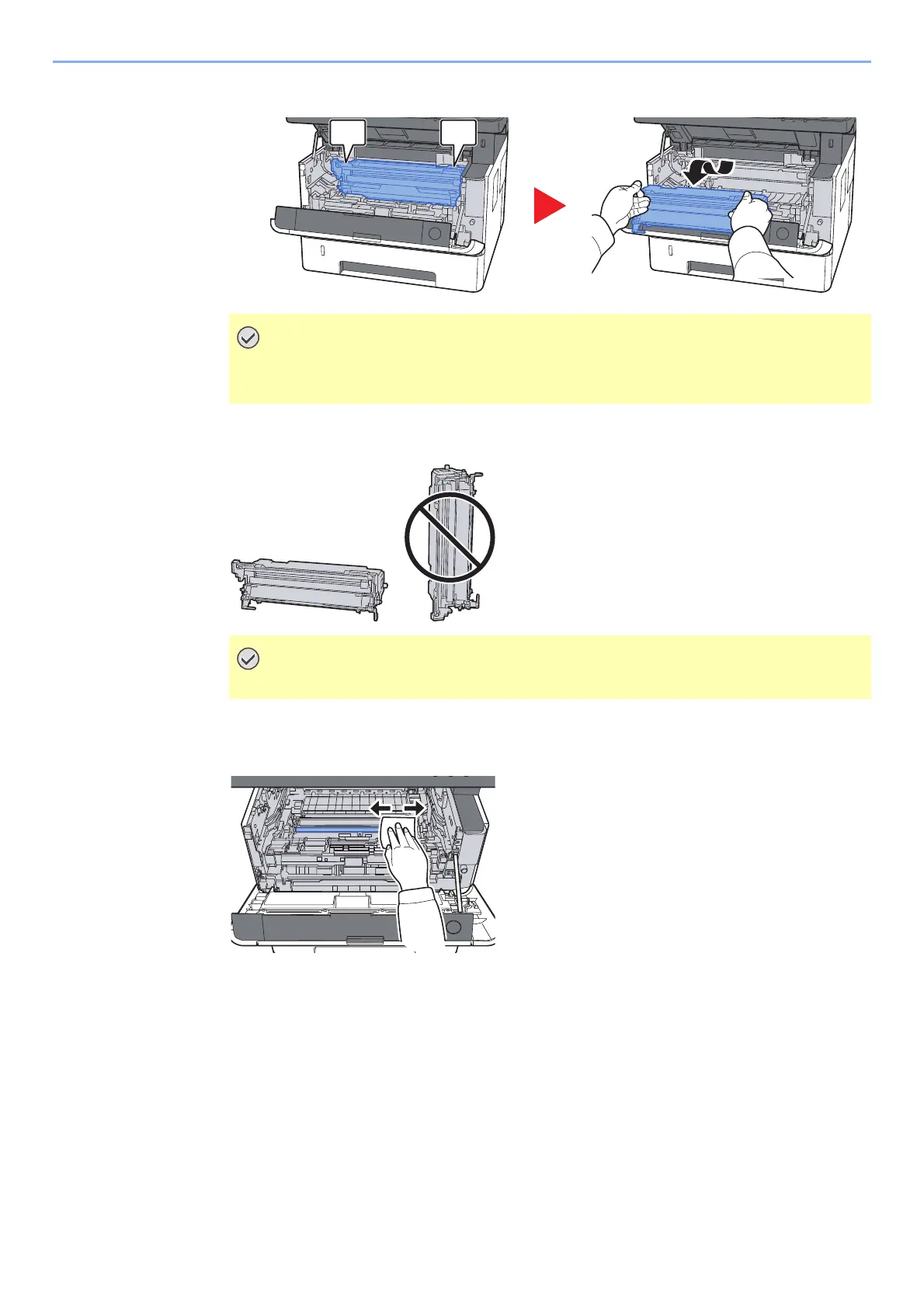 Do not touch the drum or subject the drum to shock. Print quality will be degraded if