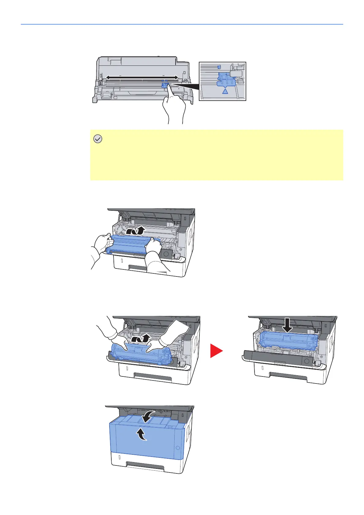 • After cleaning, make sure you restore the main charger cleaner to its home position