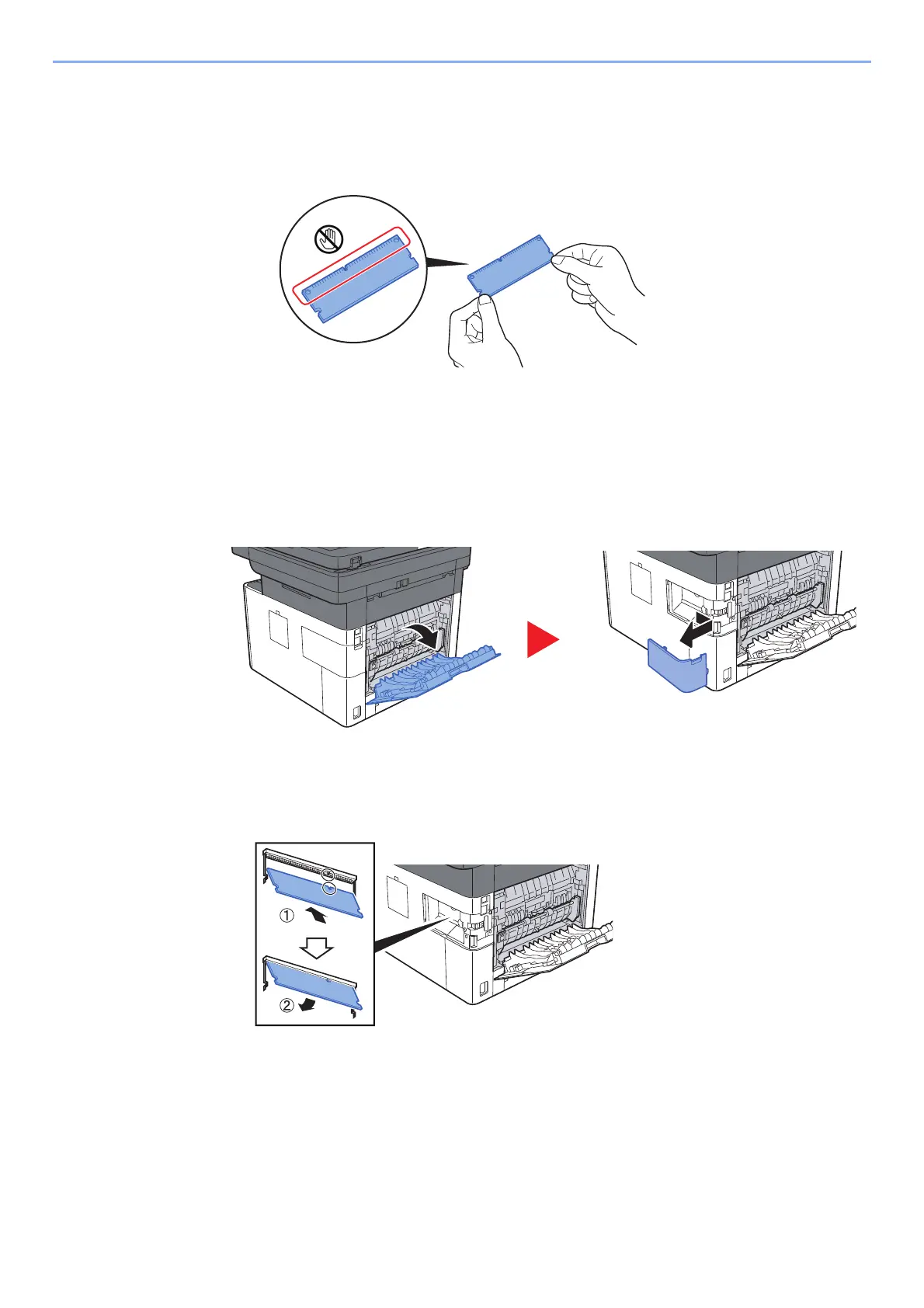 To protect electronic parts, discharge static electricity from your body by wearing an antistatic wrist strap, if possible,