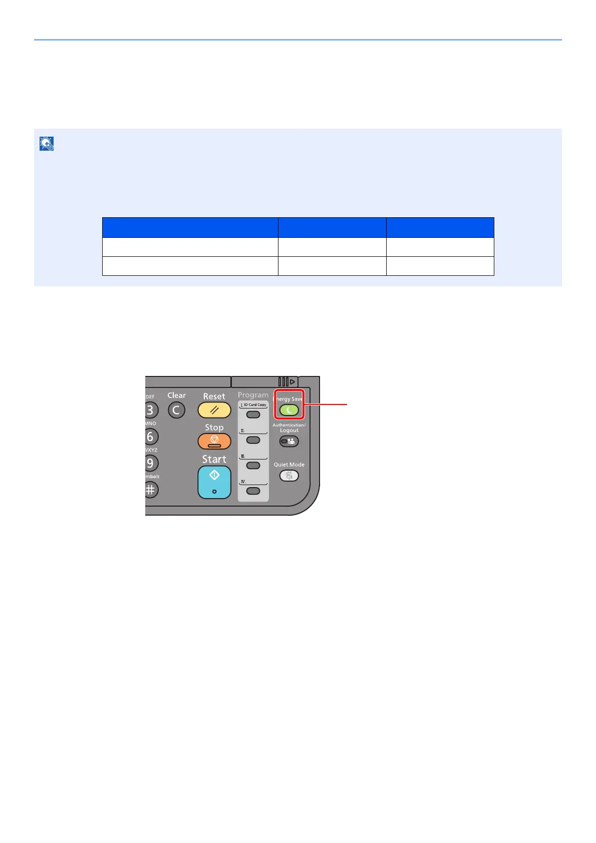 Installing and Setting up the Machine > Energy Saver function