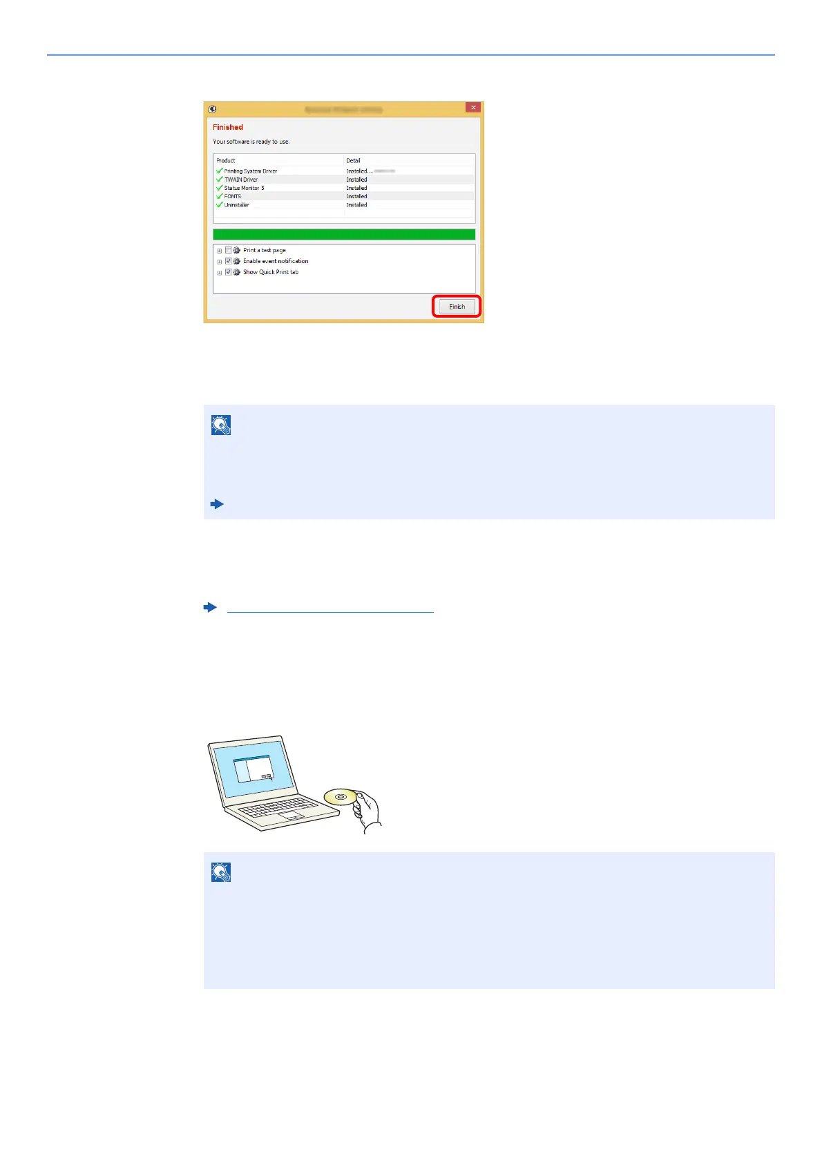 When "Your software is ready to use" appears, you can use the software. To print a test
